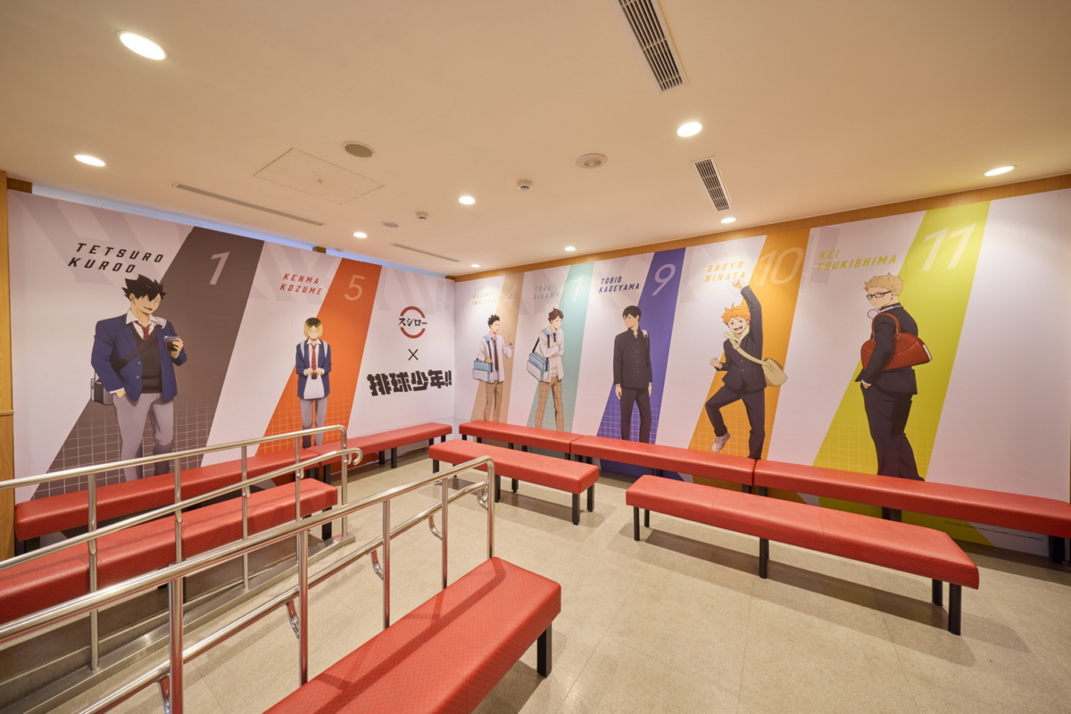 這次聯名以烏野高中、音駒高中、青葉城西高中、稻荷崎高中與梟谷學園高中五大校隊為主視覺,讓角色們換上日常服裝登場,一共有五家主題門市,從候位區、牆面到桌上裝飾,處處都是打卡點,彷彿走進排球少年的世界。