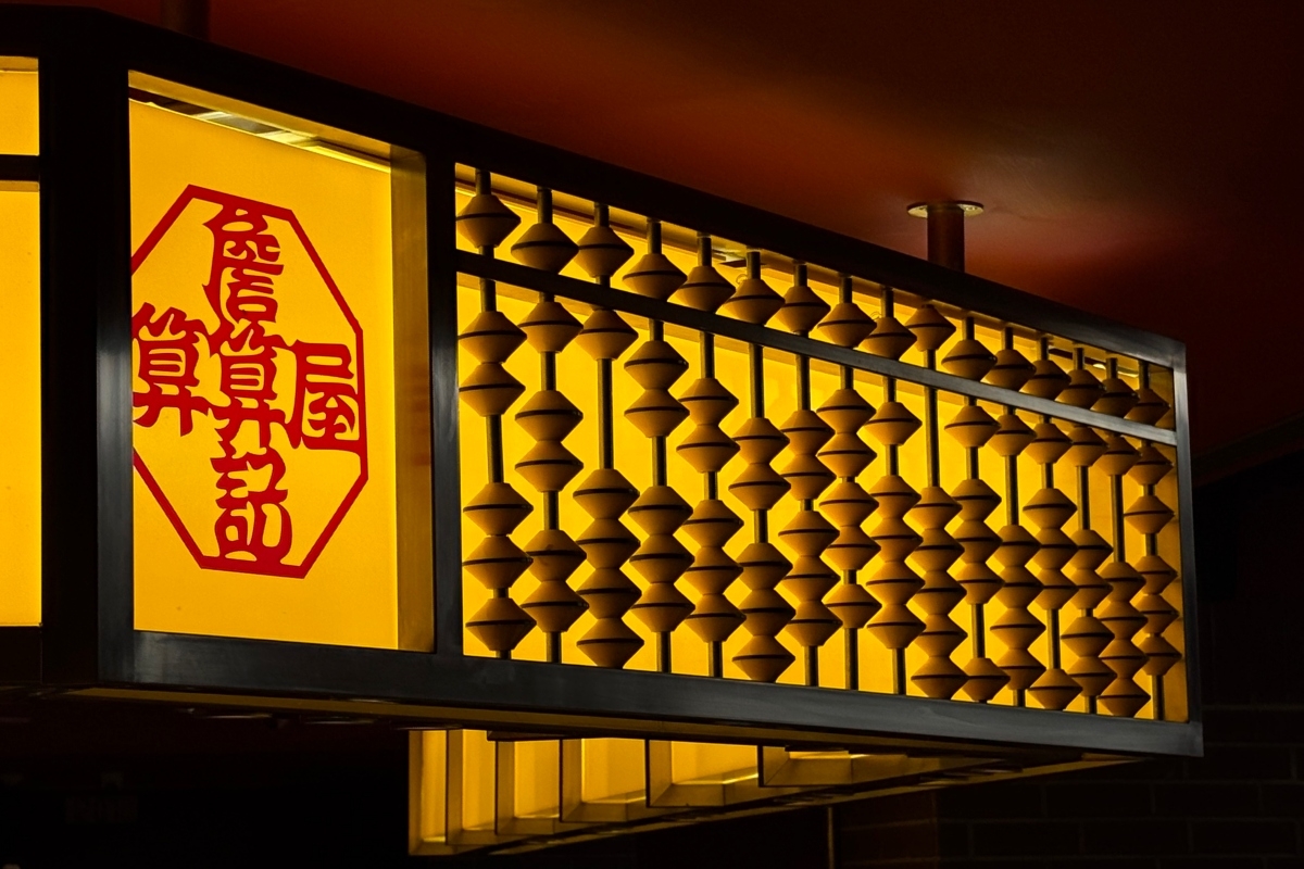 延續詹記西門大世界的1990年代摩登台風2.0裝潢,由本事空間製作操刀以開在命理街的小火鍋店為概念,取名涮涮屋諧音「詹記算算屋」。吧檯座位區上方特別設計成大型珠算盤,餐墊上則有詹記麻辣西門大世界的手相分析,就像真的來到神秘的算命小店用餐。