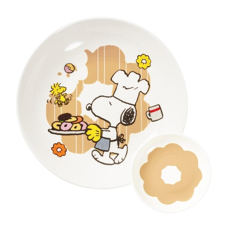 最後還有兩款史努比聯名限定加購品,「甜甜圈造型玩偶抱枕」將史努比打造成Q版甜甜圈,圓滾滾超適合作為追劇神器;另一款「陶瓷盤碟組」則以烘焙師造型的史努比為主角,小碟子還做成甜甜圈樣式,為你的下午茶時光添加可愛儀式感!