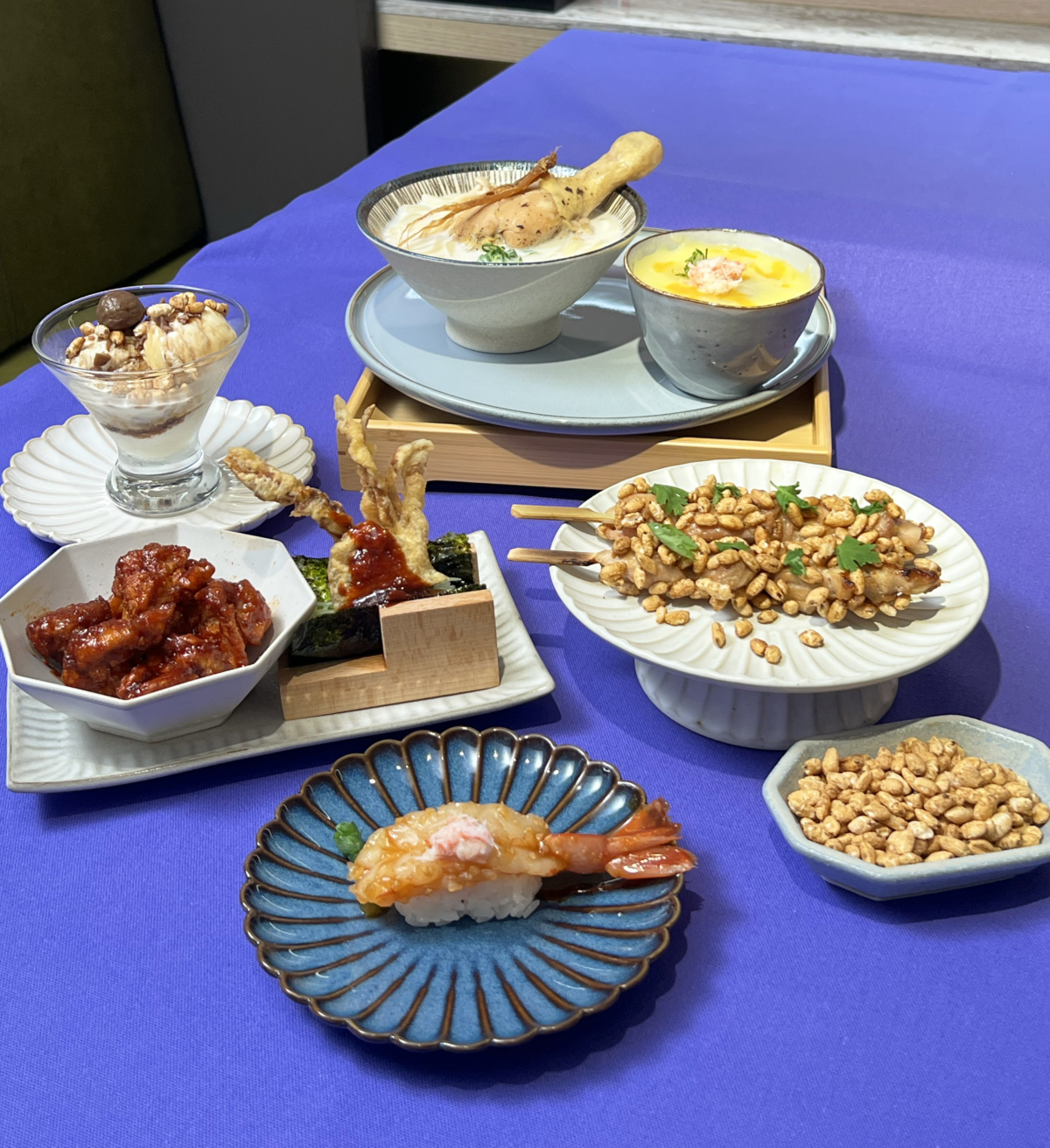 在台灣生活九年的「韓勾ㄟ金針菇」自創品牌「金家ㄟ」首次與MAGiC TOUCH聯名,嚴選台灣人喜愛的韓式食材,共同研發出7道韓勾潮食。其中洋釀軟殼蟹手卷、金家ㄟ洋釀唐揚雞特別加入金家ㄟ洋釀醬,另外還有雪蟹起士茶碗蒸、醬醃赤蝦壽司、韓式人蔘雞烏龍麵、韓式大醬米香雞肉串與黑糖米栗冰淇淋。