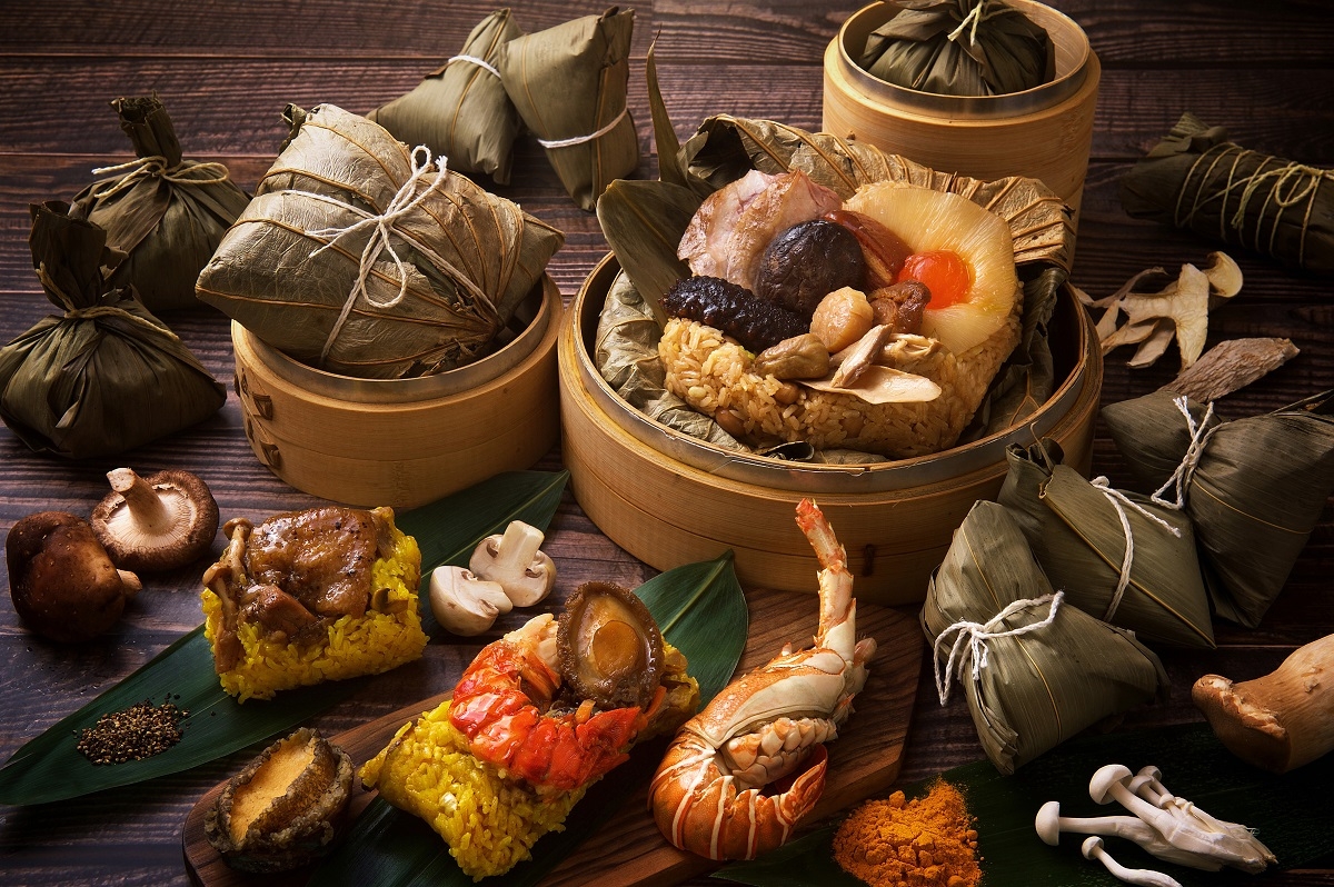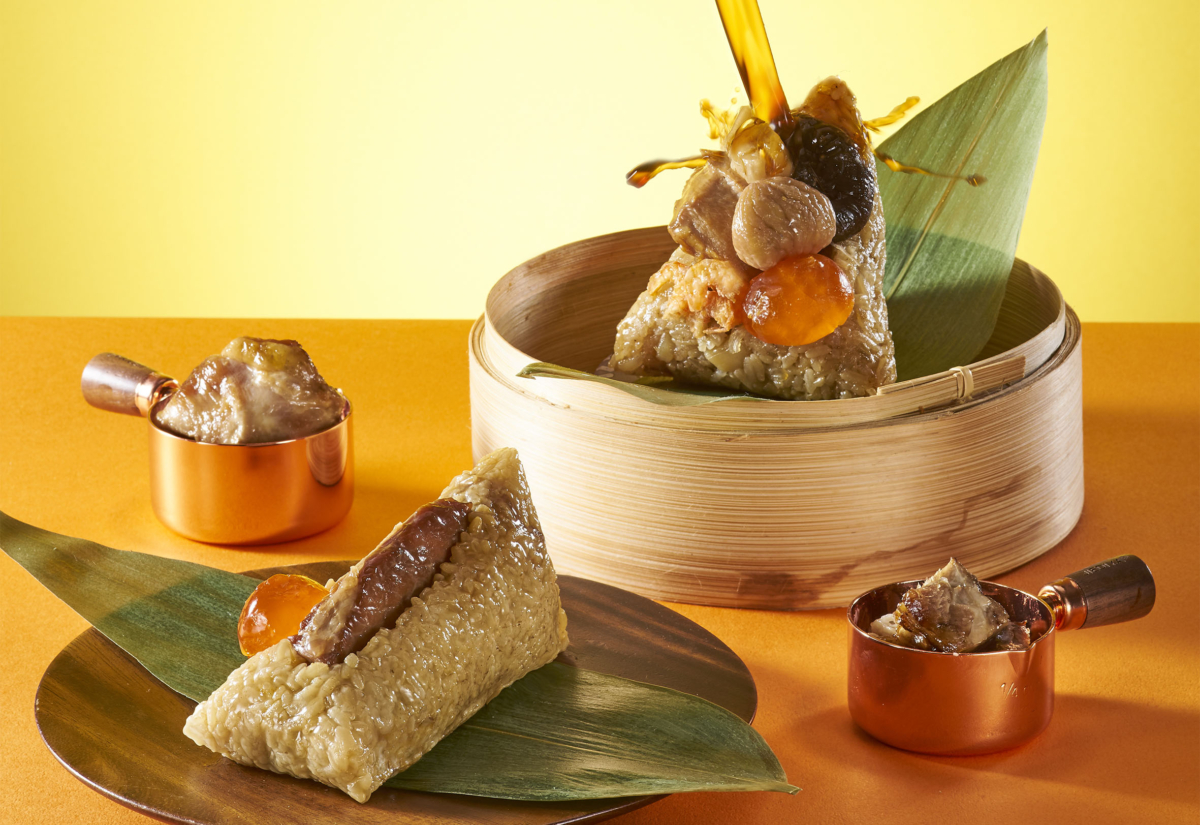 集結往年熱賣的綜合葷食與素食組合,主廚特製「皇家豪華鮑貝粽」,餡料包含鮑魚、大干貝、櫻花蝦、三層肉與魷魚等等,非常豐富。「御品花雕雞肉粽」以台酒花雕雞麵為靈感,內餡包含干貝、栗子、香菇、鹹鴨蛋黃、等食材,醇厚酒香完美入味雞腿肉。