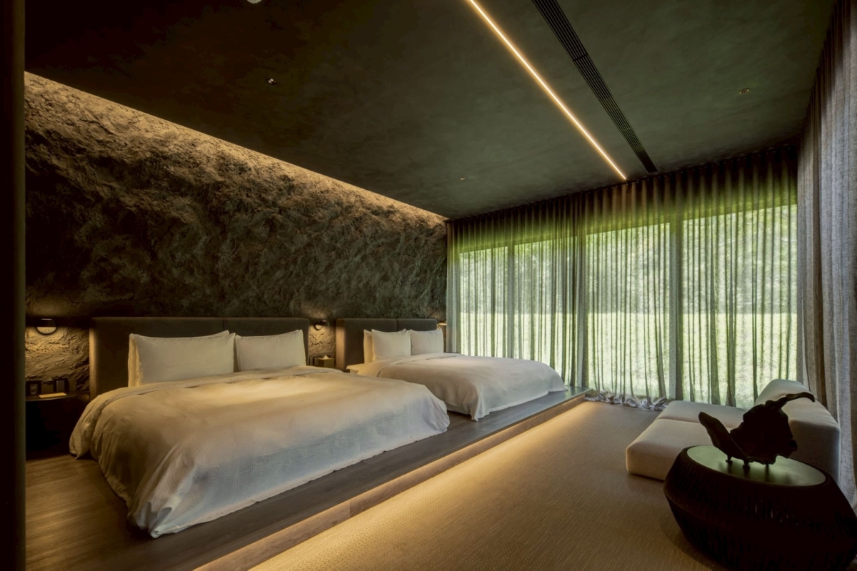 且為讓旅客放鬆享受靜謐的自然之美,僅規劃5間客房,分別以「不朽」、「山盟」、「織」、「茶」、「岩」命名,每間房皆述說一段土地與自然交融的故事。客房設計則以當地的自然生態為元素,運用石材、木材、竹子等為設計靈感,呈現隱世秘境的自然探索。