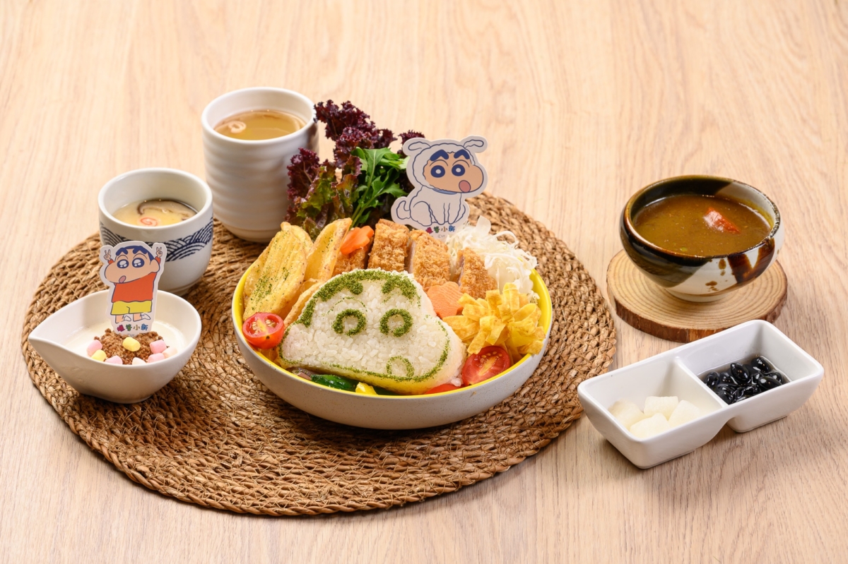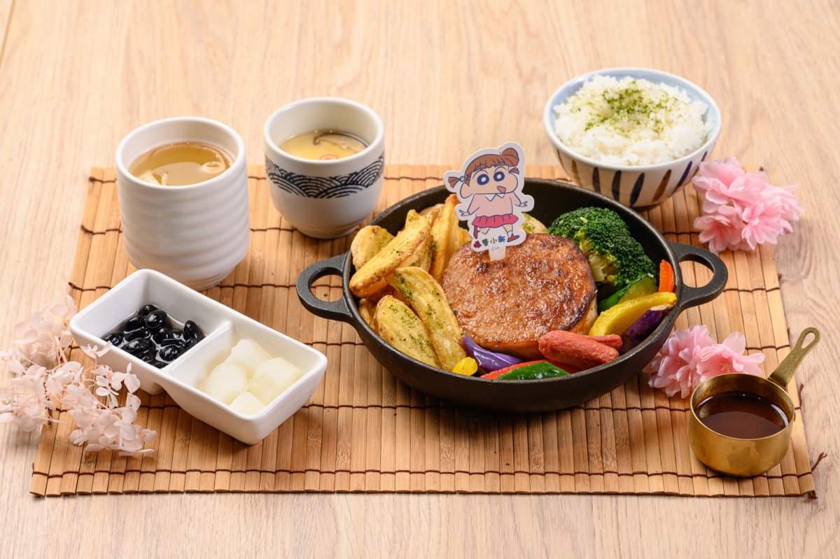 本次聯名菜單一共推出兩道主餐與一款甜點,包含「媽媽的豬排咖哩飯哦!」與「濃の味妮妮家漢堡排」,將動畫中的經典情節轉化為美味料理。咬下酥脆豬排、品嚐爆汁漢堡排,再來一口「小新的小心點」,香草冰淇淋搭配草莓醬與角色餅乾,視覺與味覺雙重滿足!