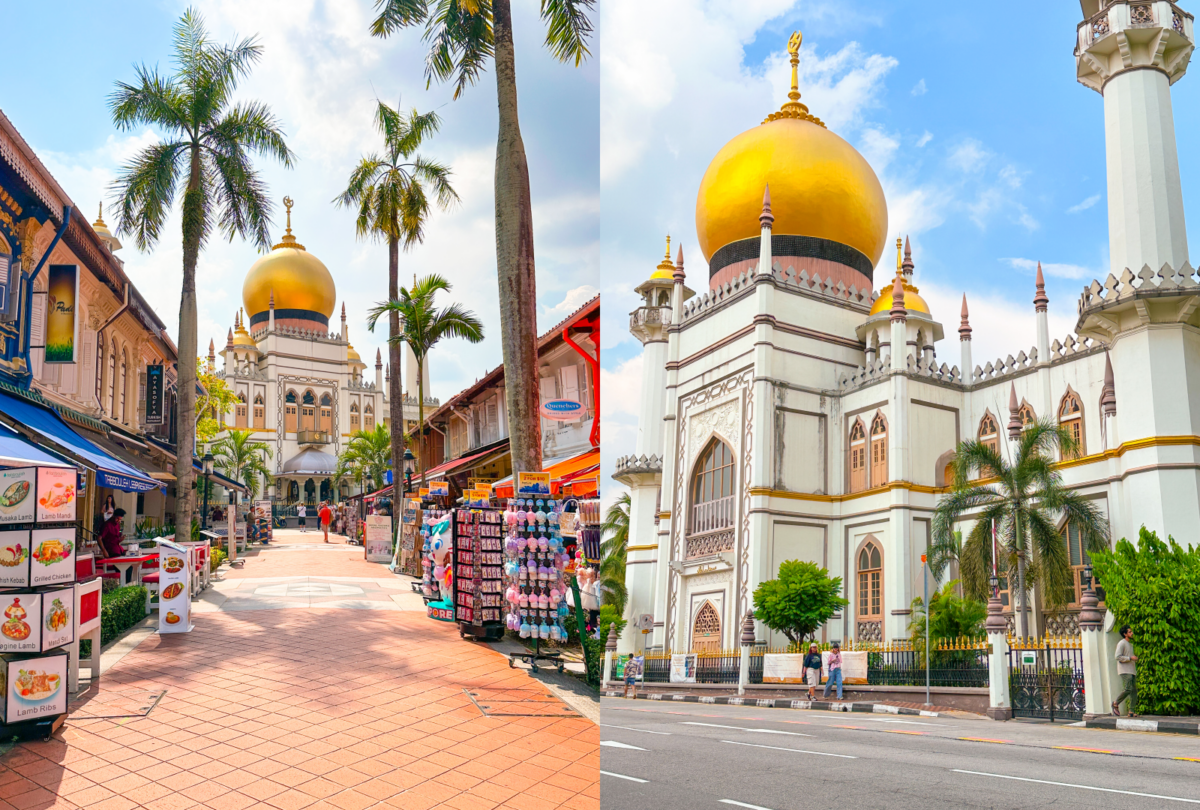 還沒逛過癮的話,絕對不能錯過同樣充滿異國風情的【Kampong Gelam 甘榜格南】!這裡曾是馬來皇族居住的地區,也是新加坡最古老的城區之一,中國、馬來、印度和歐洲文化在此交融,每一條街巷都藏著歷史的溫度與色彩;而最醒目的地標非蘇丹回教堂莫屬,金色圓頂超壯觀,怎麼拍都氣勢十足!街區內的哈芝巷 Haji Lane則是另一個風格小宇宙,彩繪牆、塗鴉巷、阿拉伯香水店、潮流選品店聚集,走到哪都是拍照熱點~小編私心推薦其中一間必逛的特色小店Vintagewknd,主打二手衣再生設計,從古著中玩出新風格,是推動再生時尚的潮流品牌代表。