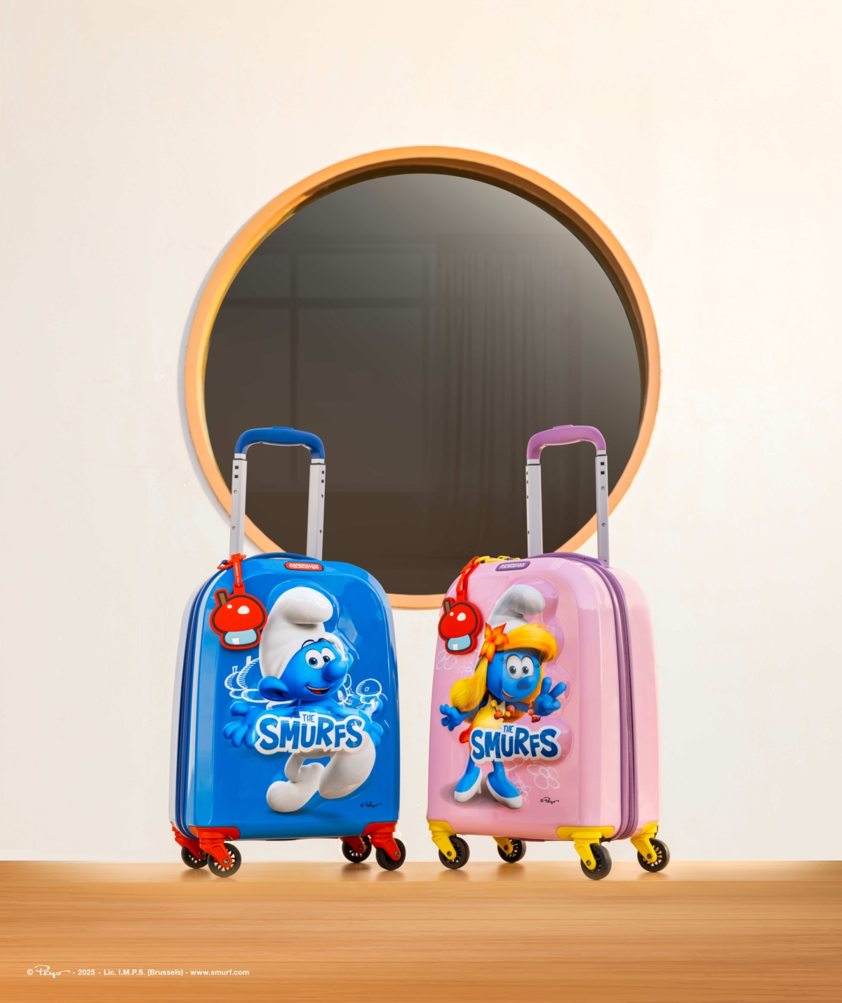 American Tourister 與經典動畫《藍色小精靈》攜手推出全新限量聯名系列。這次的合作以小精靈們的森林世界為靈感,設計出富有童趣、充滿活力的旅行單品,讓每次的旅行都充滿歡笑和驚喜。