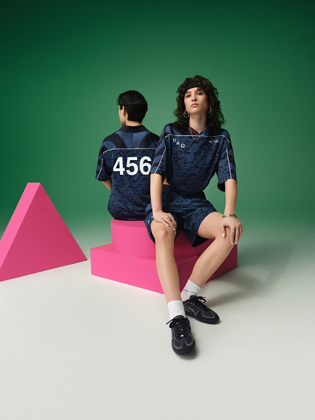 服飾系列同樣精彩!特別推出魷魚遊戲足球風印花短袖 Polo 衫,正面運動剪裁展現街頭態度,背面則印上經典的「456」背號,不僅是向主角致敬,更象徵著對人性的信念是遊戲中的最後一道防線。
