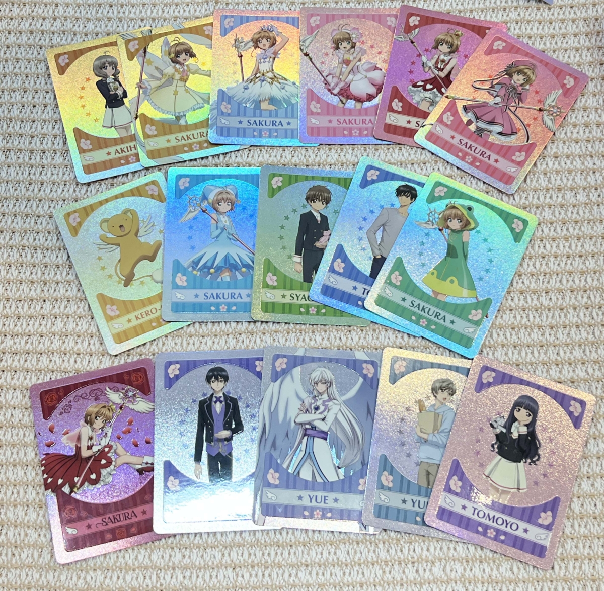 周邊部分除了角色抱枕、立牌等等,還特別與香氛品牌ID.U合作,推出香氛掛片噴霧與蠟燭,瓶身為小櫻的各式服裝設計。最後必玩小卡抽卡機,共有16款角色卡片,其中1款為隱藏版,全系列採用幻閃材質印製,極具收藏價值。