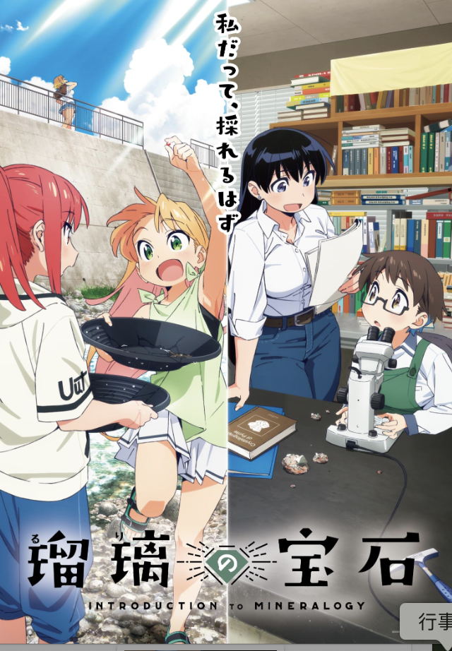 改編自澀谷圭一郎創作的科普漫畫。女高中生琉璃熱愛珠寶、水晶,偶遇礦物學研究生荒砥凪。作品以礦物科普為骨,以少女探索為動,融合知識與詩意,漫畫版清晰介紹礦物特性,動畫則可望呈現絢麗視覺,是富教育意義又療癒的輕旅行作品。