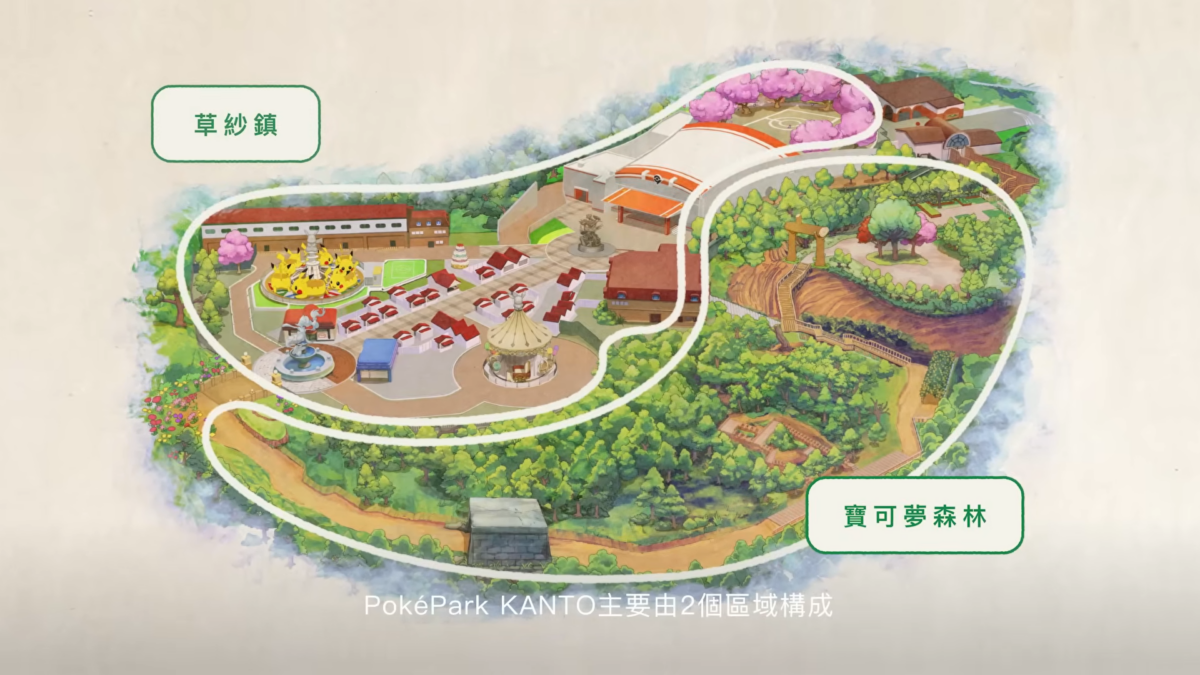 PokéPark KANTO 將建於東京都與神奈川縣交界的多摩丘陵,佔地約2.6 公頃(約26,000㎡),並劃分為兩大核心區域,設計背景則是遊戲中的關都地區,真實還原遊戲中的野外探險與城鎮互動