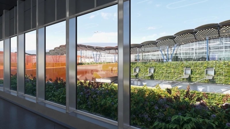 第三航廈已獲 綠建築候選金級 證書,採用低輻射 Low‑E 玻璃與屋頂太陽能板(發電 800 kWp)、再生水回收系統(45% 污水再利用於空調與澆灌),打造環境友善與節能的新門戶。航廈內行李系統、電梯、資訊系統與協調程序等亦進入測試與整合階段,待所有系統通過驗證後,才會全面開放使用。