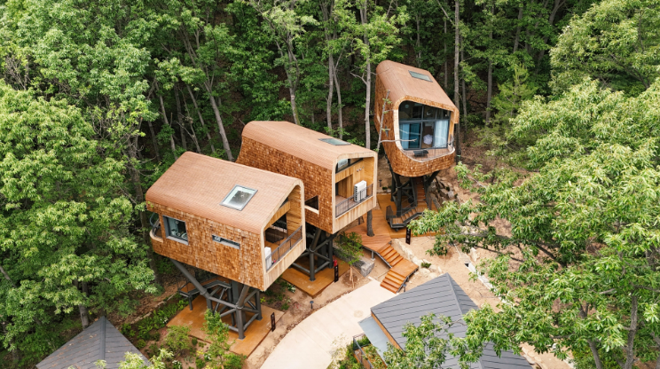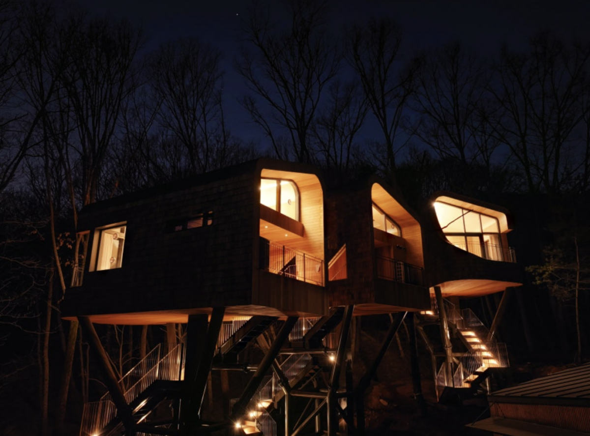 園區內共有18棟建築、25間客房,其中最大的亮點莫過於離地高達14公尺的樹屋!樹屋共有3棟,每間為4人房,部分房型的天花板採用透明玻璃設計,夜晚躺在床上就能將星空收進眼底,非常浪漫~而這裡也主打最近流行的「數位排毒」,房間內沒有提供電視,讓住宿更能沈浸於自然的擁抱中。