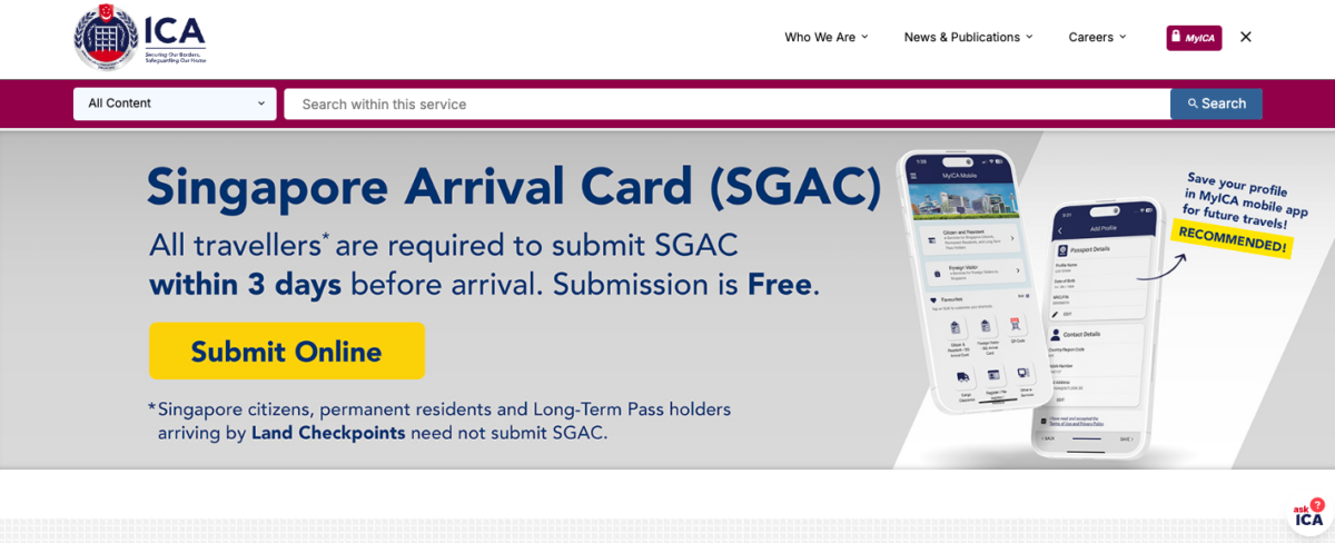 持台灣護照入境新加坡,旅客可享有30天免簽,但要注意護照有效期至少6個月,日本、韓國等國家旅客同樣享有短期免簽待遇。而在入境前3天內,旅客必須填寫「電子入境卡(SG Arrival Card)」,包含個人資料、航班資訊、當地住宿地址等等,完成後會收到E-mail或App上的確認通知,入境時海關會查核。
