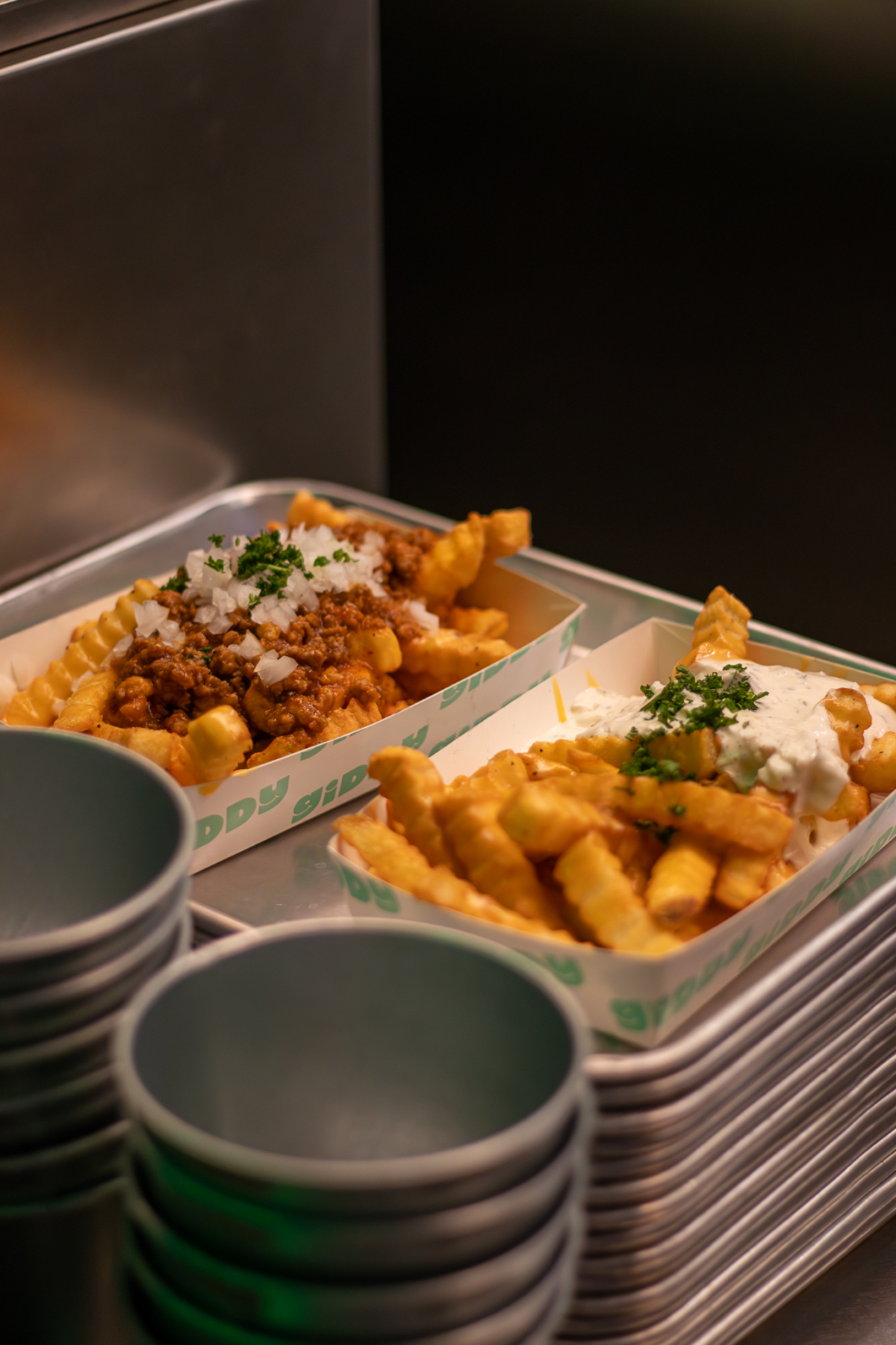 享受微醺時光,當然也要來點下酒菜~「我懶得想」系列以波浪薯條為底、搭配蒔蘿塔塔炸蝦、雞米花、起司肉醬與手撕豬肩,與三五好友分享剛好。另一主打系列「就薯要醬選」提供11款店家自製沾醬,有蜂蜜芥末、蒜味美乃、鄉村醬、沙茶醬、豆腐乳美乃醬、XO醬等口味,實現薯條沾醬自由!
