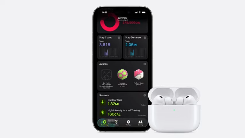 首次搭載 心率感測器,能即時監測心律變化,並支援多達 50 種運動模式。與 iPhone 的健身與健康 App 連動後,可完整追蹤心率、卡路里與里程數。這使得 AirPods Pro 3 進一步跨足「運動健康穿戴裝置」領域。