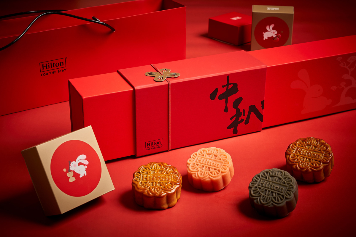 禮盒以傳統的中式美學為主軸,選用喜慶的紅色作為主色調,並融入月下兔影設計。盒內包含2款廣式經典月餅、2款特色桃山月餅與精選茶包,其中「紅心芭樂桃山月餅」嚴選高雄燕巢紅心芭樂,與白豆沙融合成果香內餡~