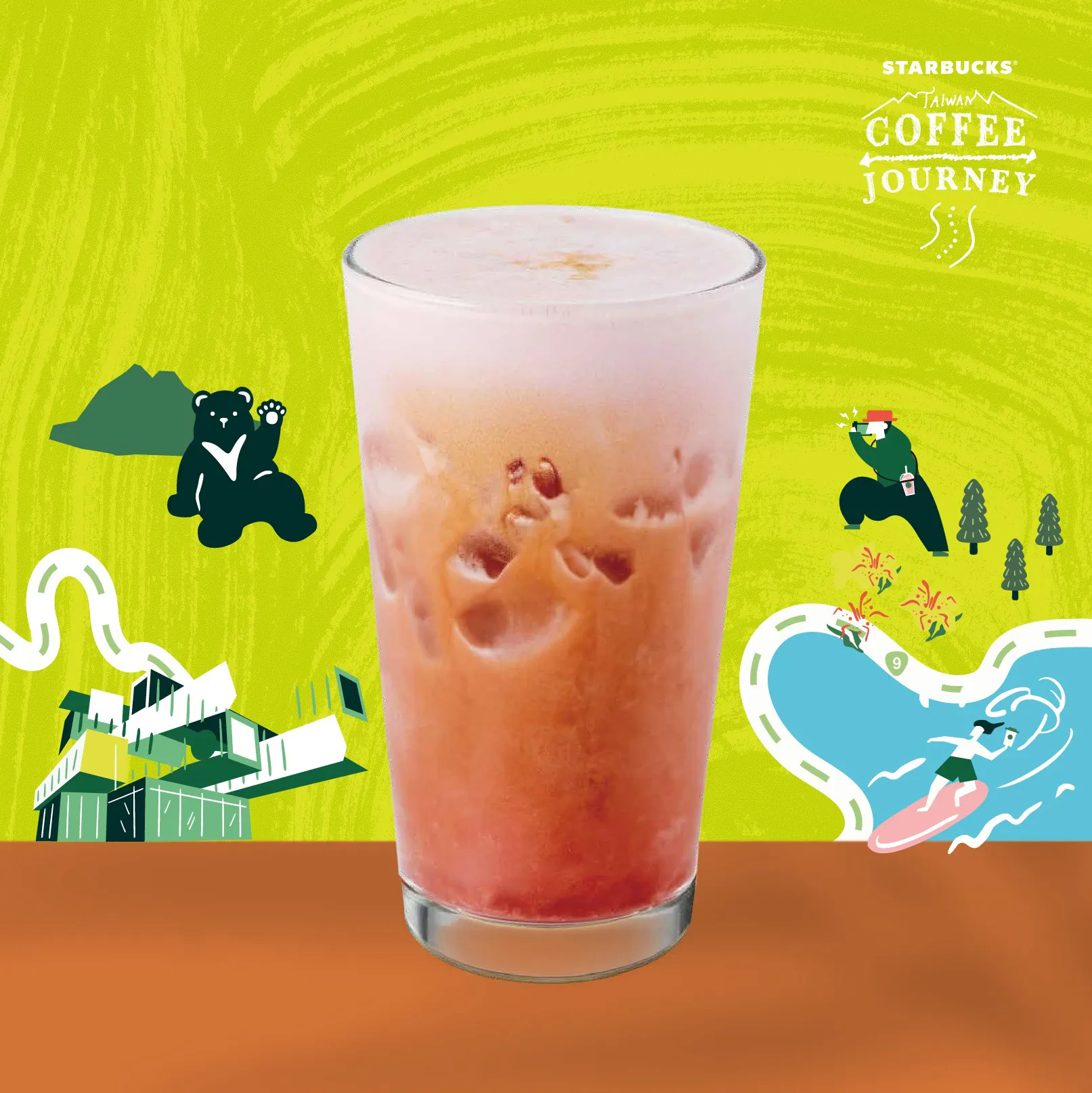 來到山巒與雲霧縈繞的東台灣,則適合來上一杯綿密奶泡包裹茶香與咖啡香的特調。這款創新飲品巧妙地將濃縮咖啡與帶微氣泡口感的阿薩姆紅茶結合,頂層覆上西印度櫻桃風味泡沫,整體口感圓潤滑順、層次豐富。