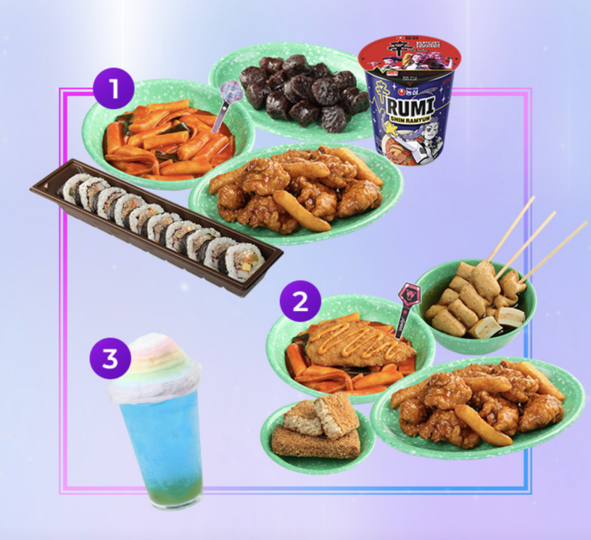 而樂園內的Snack Buster餐廳,則變成期間限定「Saja Boys小吃店」,推出HUNTR/X套餐、Saja Boys套餐、Soda Pop特調飲品等等,內容包含辣炒年糕、飯卷、炸雞、拉麵等經典韓式小吃。最後離開前別忘到商品店逛逛,將多達38款的角色周邊帶回家~