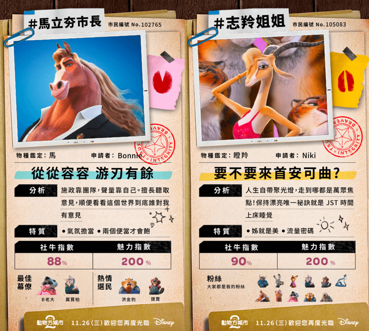 眾所期待的迪士尼經典動畫電影《動物方城市2》即將於11/26上映,茱蒂、尼克這對歡喜冤家再度出任務,預告讓不少網友嗑了一波CP,更好奇全新反派加入後的故事發展。而在電影正式登場大銀幕前,迪士尼官方推出有趣又好玩的沈浸式「動物身份鑒定」心理測驗,甚至搭上時事梗!
