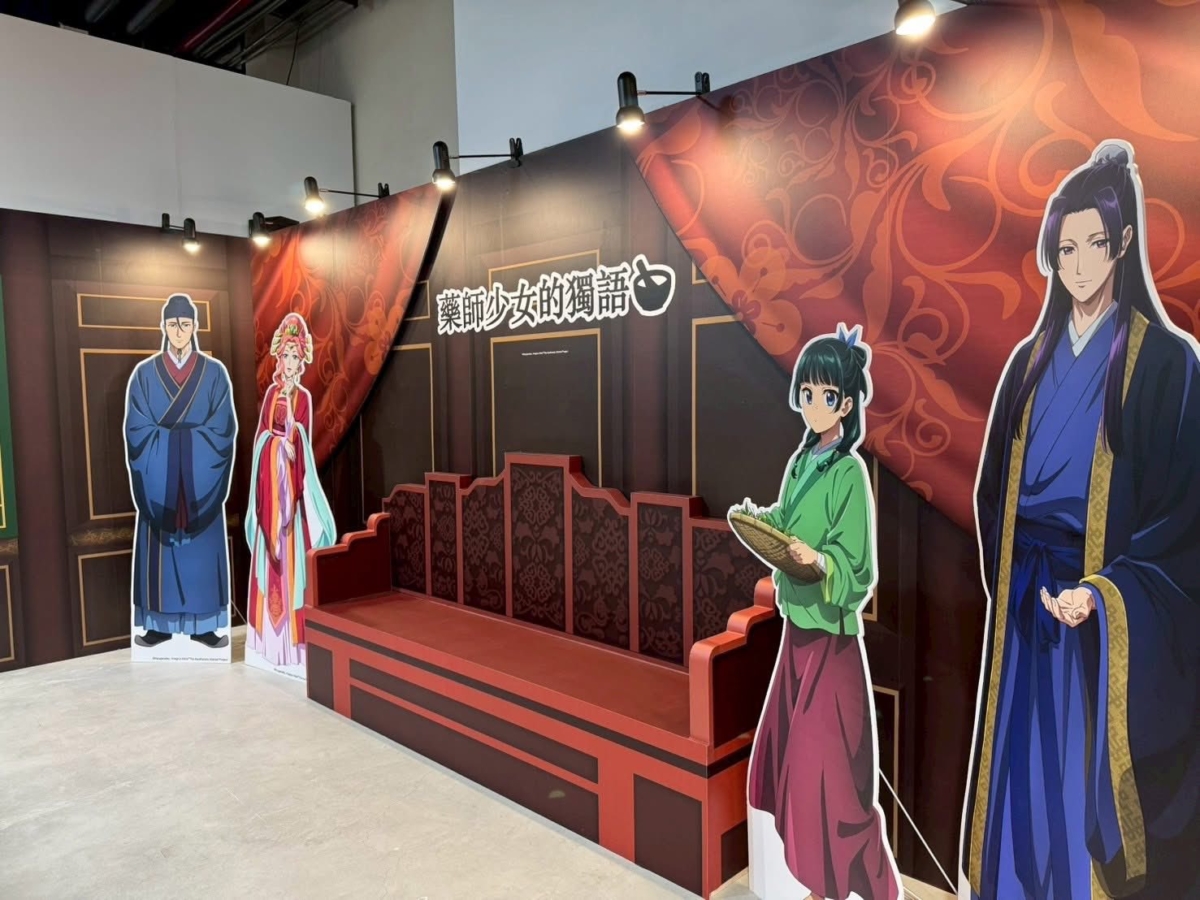 由同名輕小說改編的《藥師少女的獨語》講述藥師「貓貓」在宮廷生活的故事,運用藥學知識解開各種謎團。快閃店以宮廷為主題佈置,其中3米高貓貓氣偶更是必拍!周邊的部分首賣超過百件新商品,各種擺飾與生活用品應有盡有,粉絲們可要小心荷包~