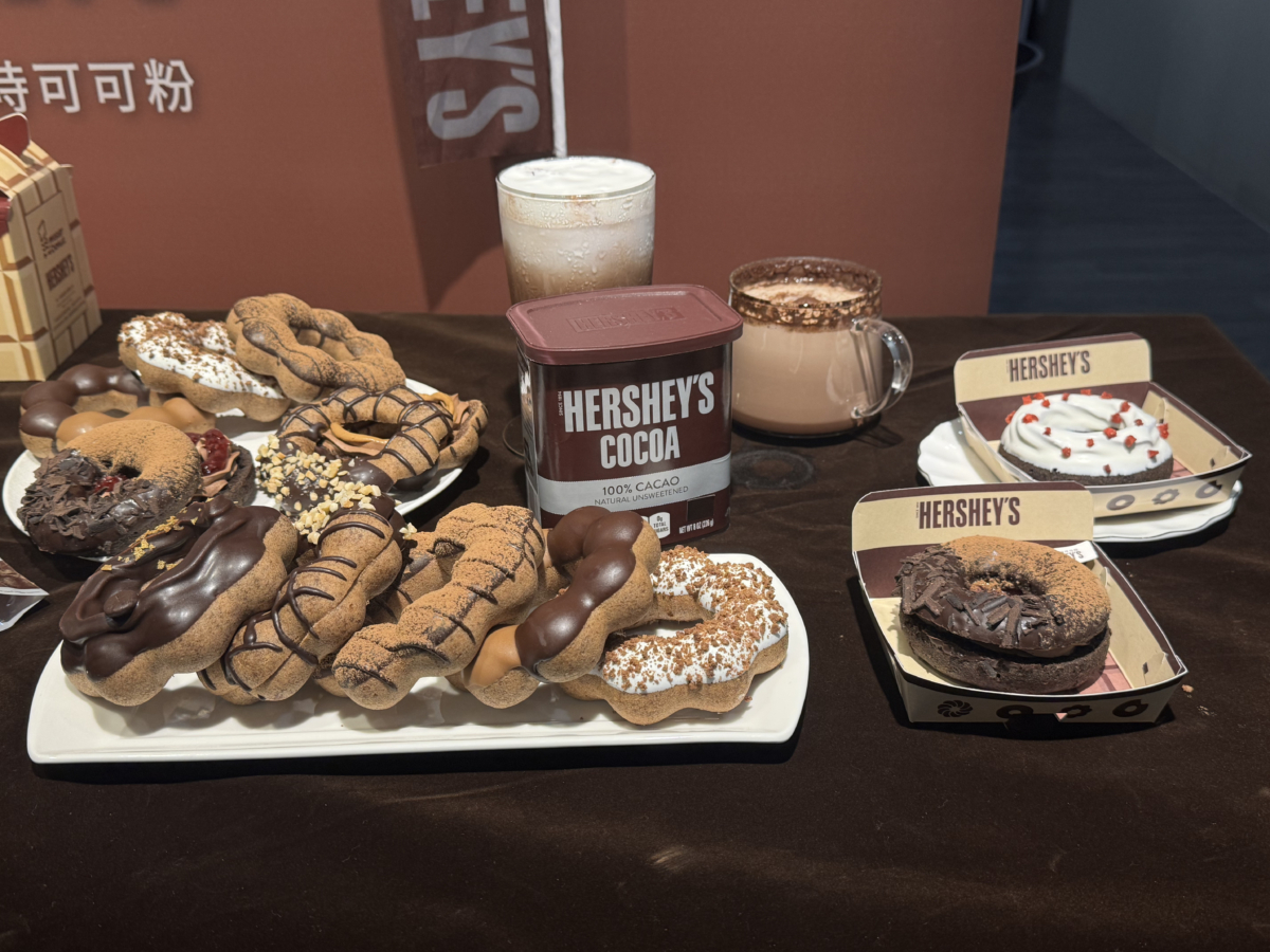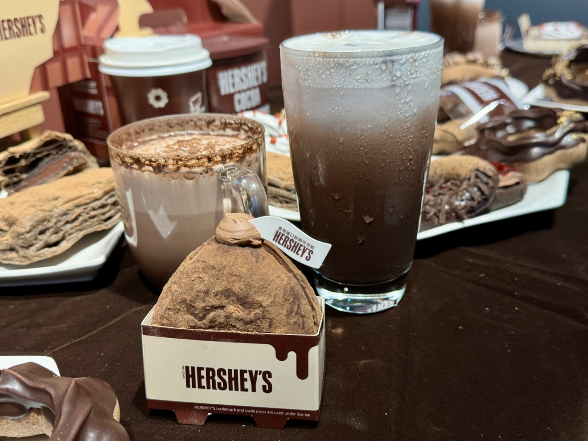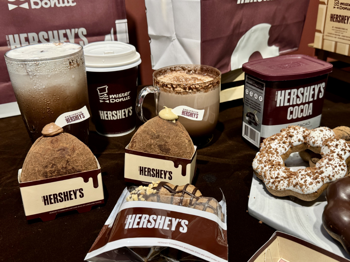 10月31日起Mister Donut與HERSHEY’S,HERSHEY’S(好時) 是美國歷史最悠久、也是全球最知名的巧克力品牌之一,由 Milton S. Hershey 於 1894 年 創立,將品牌象徵的「甜蜜與幸福」帶入Mister Donut,首次聯名推出甜點,一次推出10款新品,還包含兩款冷熱飲飲品,「HERSHEY’S可可牛奶」,這個冬天只融你口不融你手。