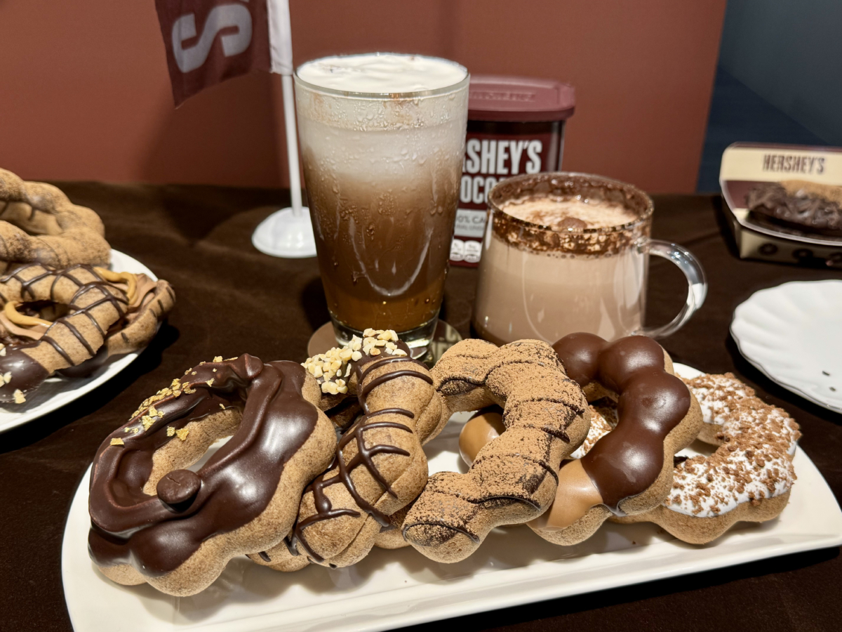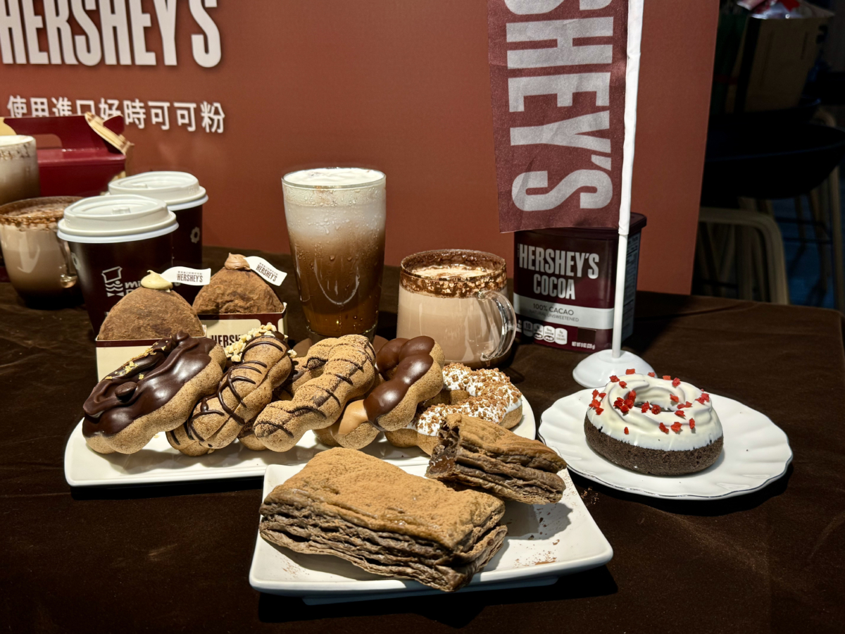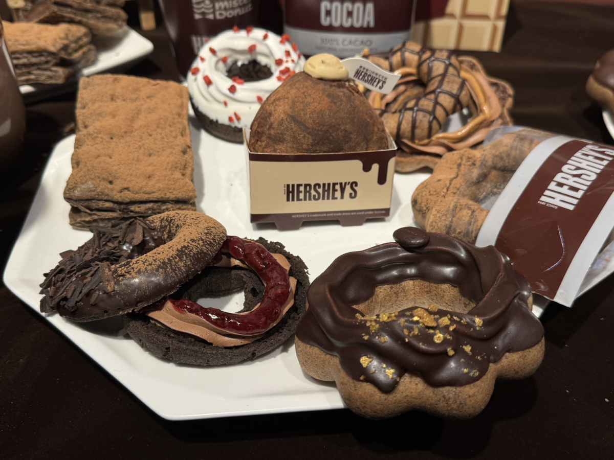 10月31日起Mister Donut與HERSHEY’S,HERSHEY’S(好時) 是美國歷史最悠久、也是全球最知名的巧克力品牌之一,由 Milton S. Hershey 於 1894 年 創立,將品牌象徵的「甜蜜與幸福」帶入Mister Donut,首次聯名推出甜點,一次推出10款新品,還包含兩款冷熱飲飲品,「HERSHEY’S可可牛奶」,這個冬天只融你口不融你手。