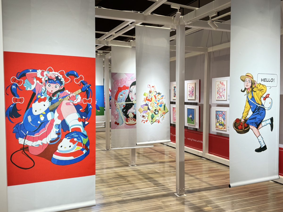 在「Hello! Friends—Kitty無論何時都在你身邊—」展區中,多位藝術家以「我與Kitty」為主題創作全新插畫作品。每幅作品都融入創作者的情感與視角,讓觀眾在觀展同時,也能反思自己與Kitty之間的獨特連結。