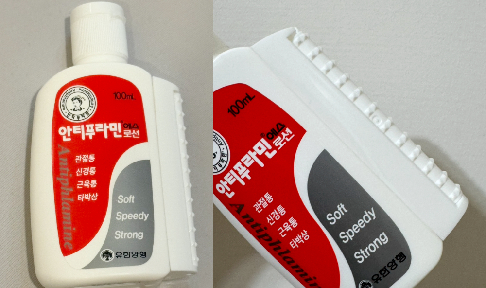 由韓國足球球星孫興慜代言的「Antiphlamine痠痛乳液」為國民痠痛救星,質地清爽不黏膩,搭配瓶身側邊的按摩滾珠設計,方便又衛生。編輯實測長時間逛完街後塗抹,有效緩解肌肉疼痛,且藥味不會殘留太久。
