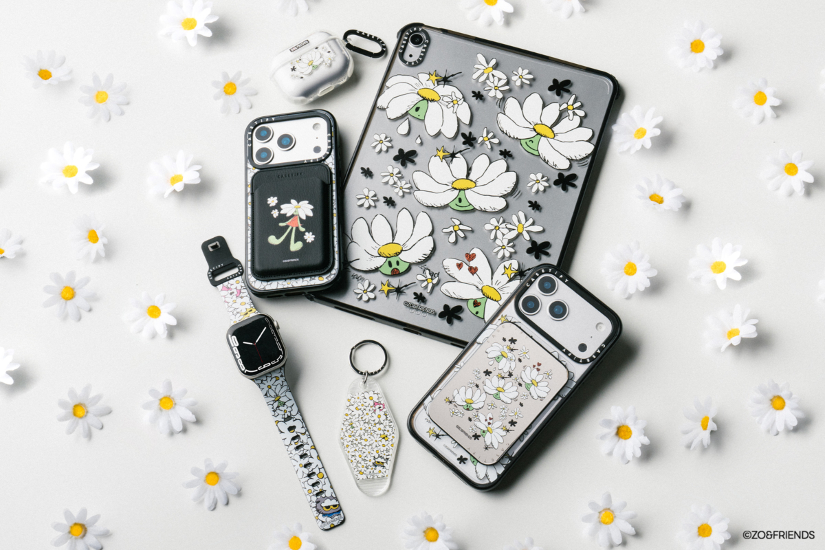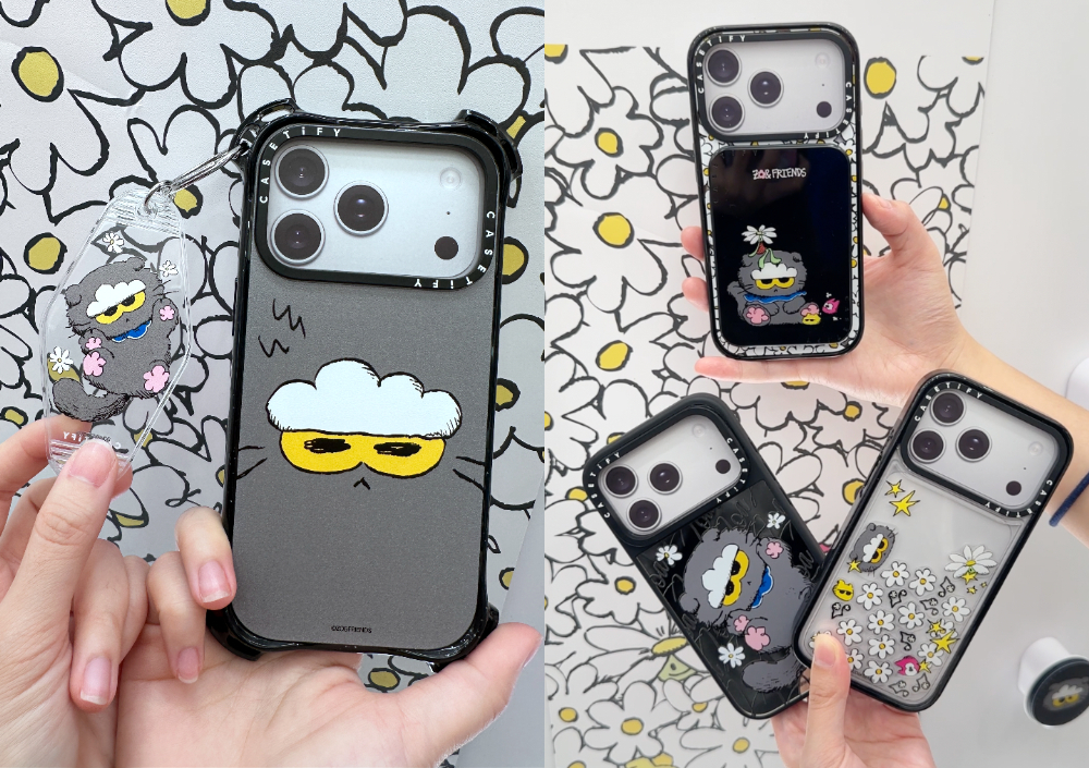 在《ZO&FRIENDS》的世界觀中,主要IP角色包含:外冷內暖的雲朵貓ZOA、熱心多話的小雛菊A&NE、由足跡幻化的色彩泡泡AKIZAKI。聯名將療癒與溫暖的角色情感世界與CASETiFY的創新設計結合,推出多款手機殼與客製化手機殼印花,既療癒又不失時尚感。