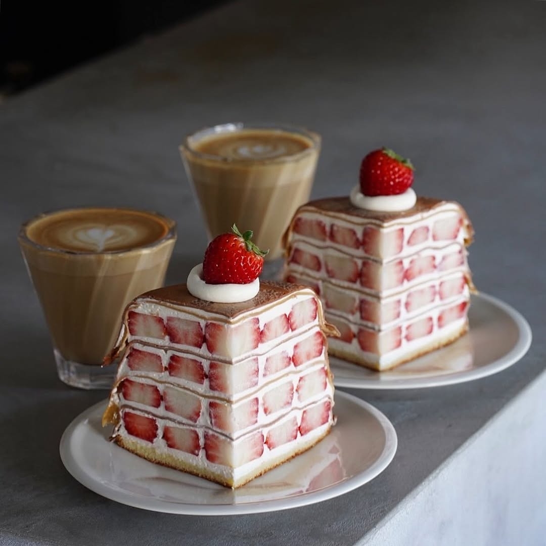 位於新宿大久保的 HERE! Tokyo,是一間主打簡約舒適風格的小型咖啡店,座位不多,卻有種讓人能靜靜坐下來放鬆的氛圍,因此深受在地人推薦。店內最有名的就是視覺感滿分的草莓蛋糕,切面一剖開,滿滿都是新鮮又大顆的草莓,幾乎每一口都吃得到果肉。搭配清爽不膩的鮮奶油,整體口感相當平衡,奶油中還帶著淡淡檸檬香氣,與草莓的酸甜完美融合。草莓用料也相當講究,是草莓控一定要列入口袋名單的一家。