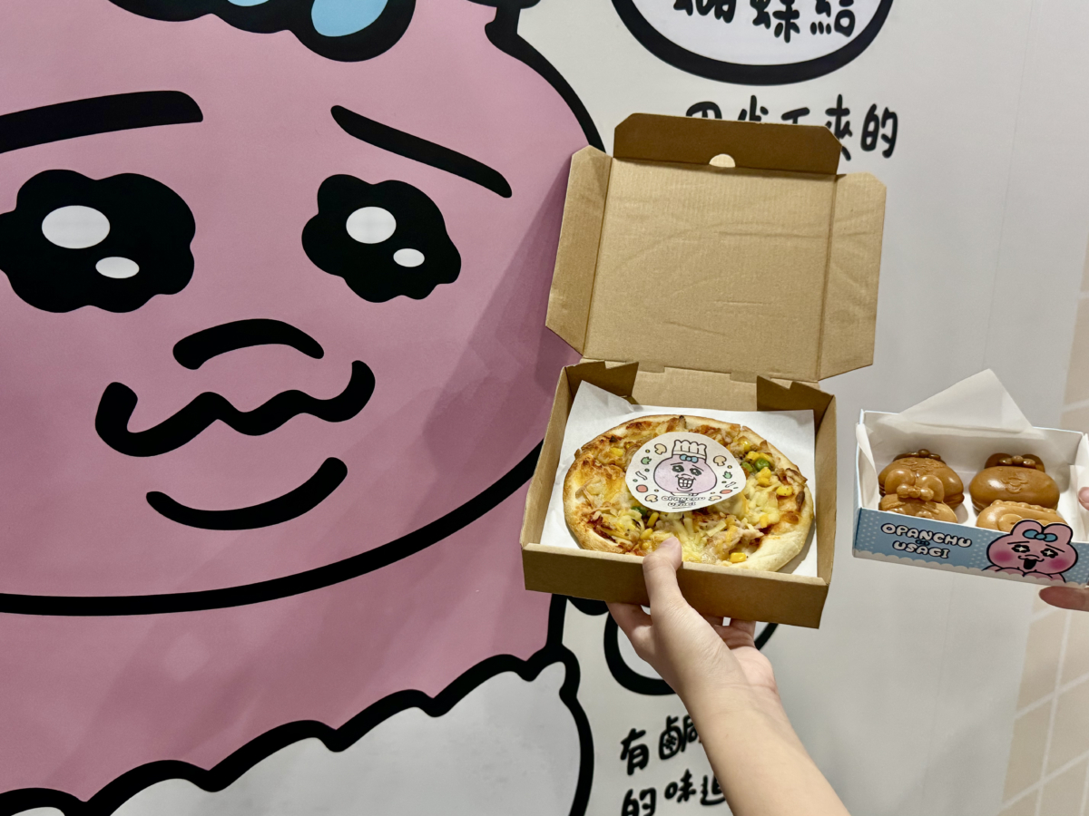 隨機表情雞蛋糕擁有各種可愛表情,甚至有機會拿到「小褲褲造型」,每一份都充滿驚喜;6 吋燻雞 Pizza 香氣十足,搭配化身廚師的褲褲兔一起享用特別有儀式感;雙色甜甜圈以粉、白巧克力搭配兔耳造型,搭配巧克力棉花糖,仔細看還能發現藏在上面的褲褲兔身影。