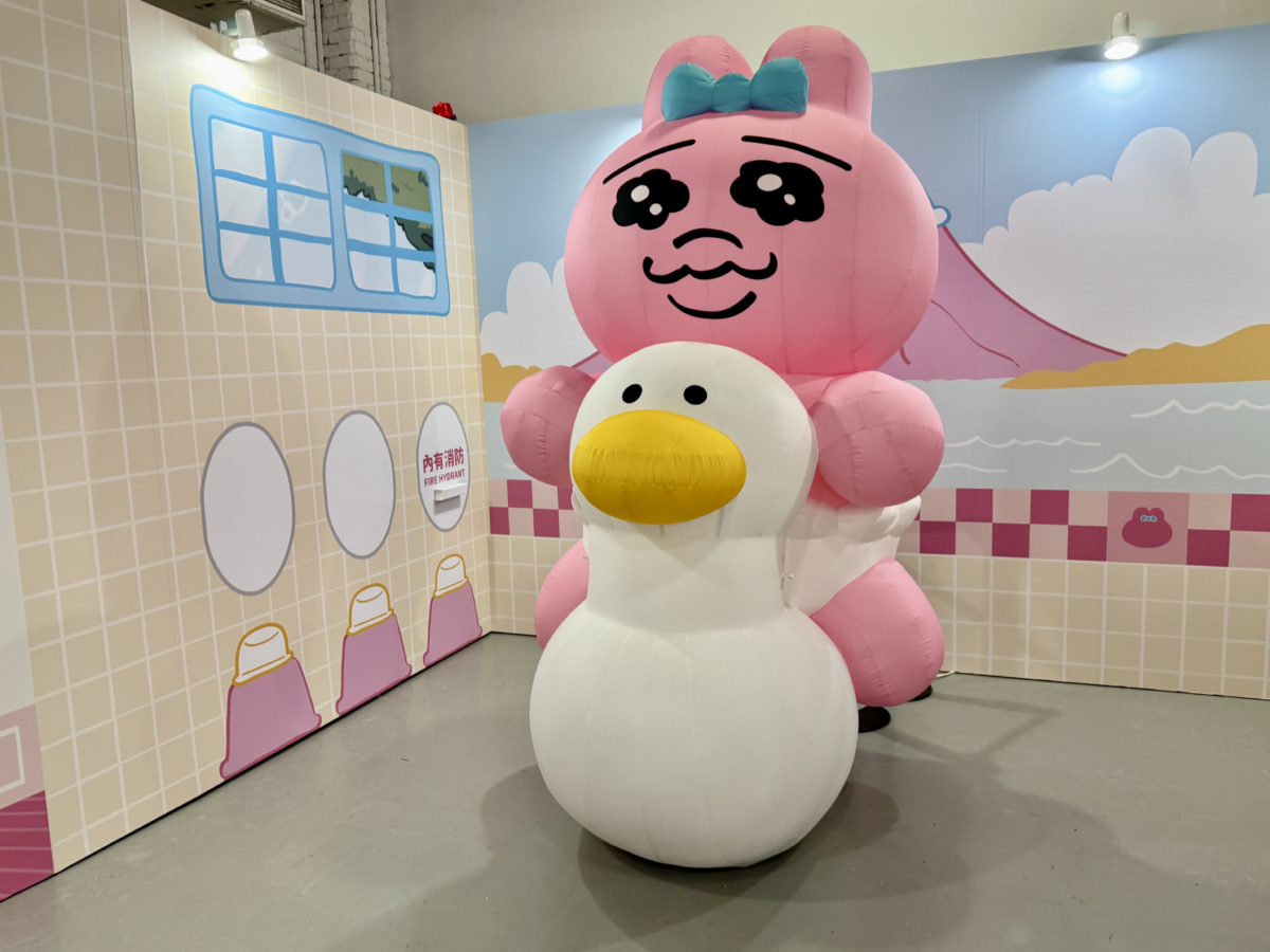 除了必拍的「澡堂區」大型褲褲兔氣偶,現場還設置「紙箱貓咪牆」、「網美街拍哈哈鏡區」等趣味場景,同時也有拍貼機與姓名貼紙機,讓粉絲能用不同方式留下專屬回憶,完整感受褲褲兔世界觀的魅力。