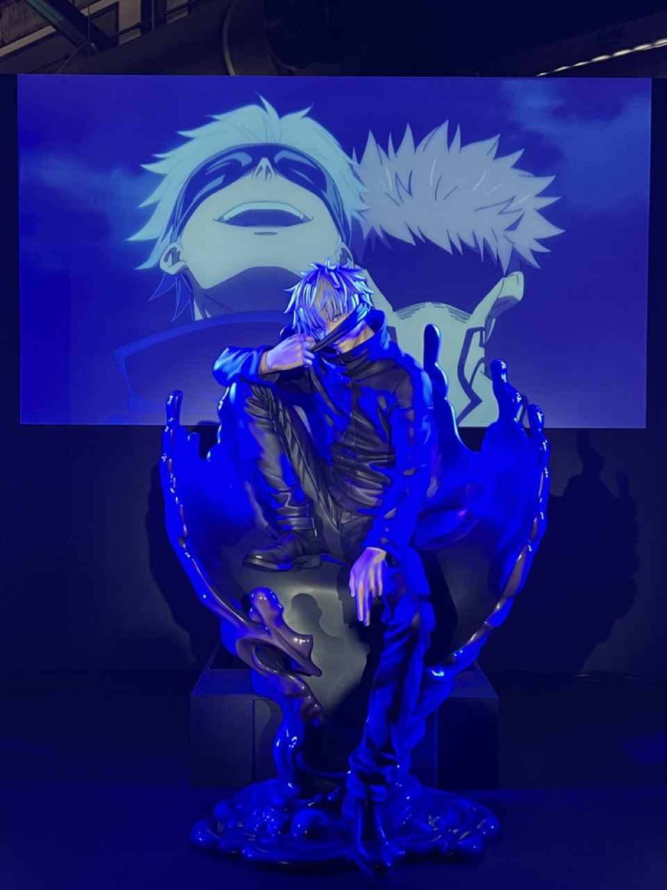 全場最期待亮點就在這!動漫迷期待值爆表的「五條悟 1:1 等身模型」終於降臨台北,重現拉下眼罩的經典瞬間,讓粉絲一睹百年難得一見的「六眼」!再搭配後方螢幕同步播放的動畫片段,視覺衝擊拉好拉滿,更能感受「五條老師」的帥氣英姿與魅力~