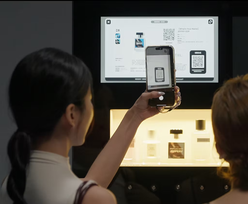 且如果你在機台上試了某款香水後非常喜歡,想要直接購買整瓶帶回家,只要掃描機台上的專屬QR Code,就能連結到線上購物平台,不僅可以購買完整容量的香水,有些還提供香水訂閱服務,或是查詢最近的實體銷售通路。