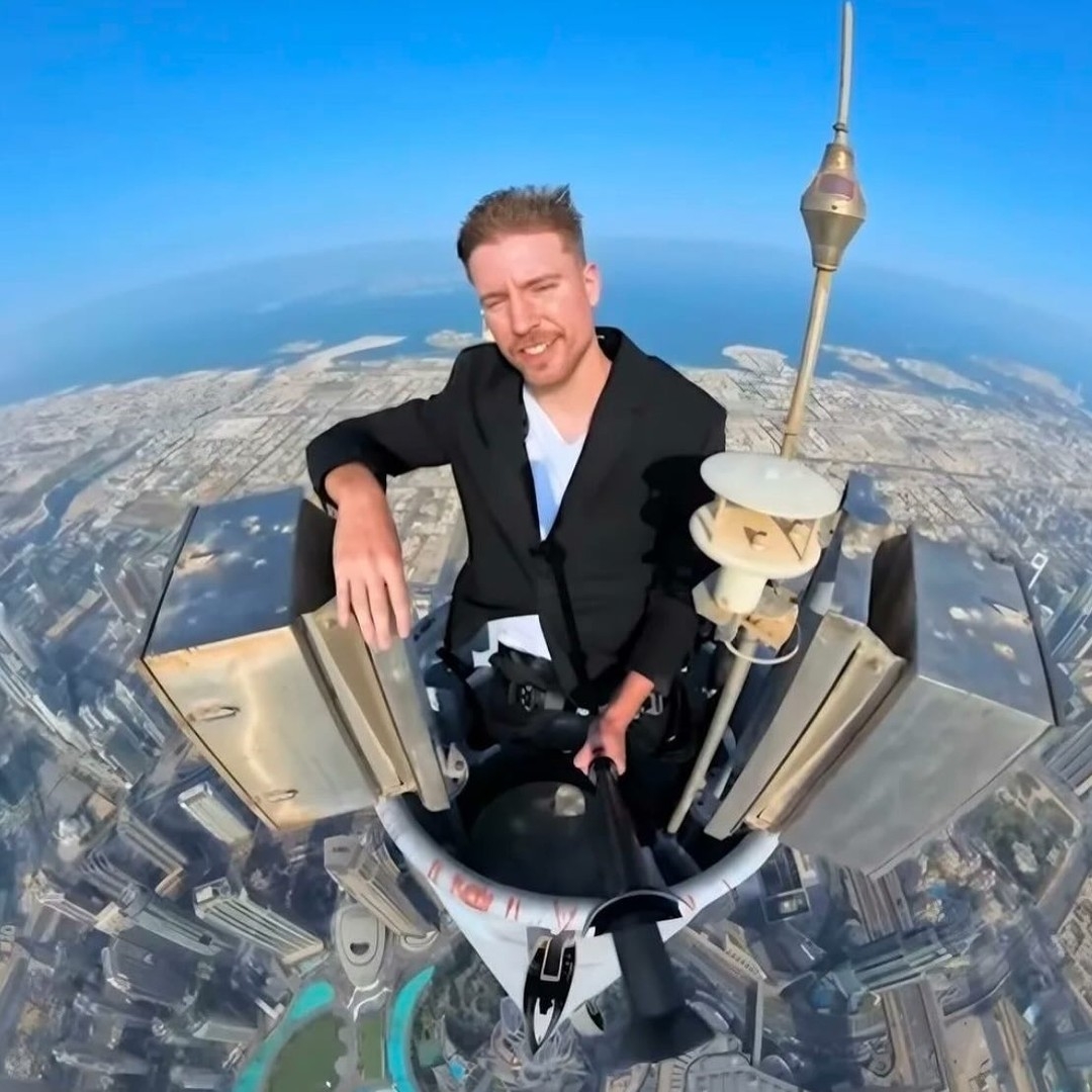 全球訂閱數最高的 YouTuber MrBeast 當然不會缺席。在 2024 年的一場影片中,他挑戰在哈里發塔頂端進行拍攝。不同於以往的搞笑風格,這次他顯露出了難得的緊張感,但也透過航拍機記錄下震撼的視角。這場拍攝光是器材運送與安全許可就籌備了數月,再次證明了只要是 MrBeast 想做的事情,即使是世界最高點也擋不住他的創意與影響力。MrBeast 在影片中坦言自己有恐高症,這次挑戰對他而言是心理創傷級的。他指出,哈里發塔最後的 900 英尺(約 274 公尺) 是電梯到不了的區域,必須完全靠人力攀爬。他在塔頂向下望時留下了經典名言:「我不該往下看的,這真的太恐怖了。」