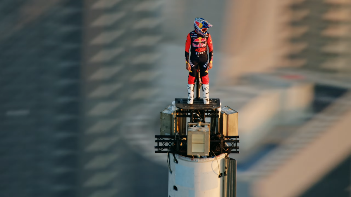 身為兩屆達卡拉力賽冠軍,Sam Sunderland 的方式與眾不同,他把重機帶上了哈里發塔。這是與杜拜旅遊局合作的特別企劃,他不僅站在塔頂,還與他的賽車一同出現在那狹小的圓形平台上。這項壯舉背後的後勤極其複雜,需要使用多部起重機將重機吊掛至頂端。對 Sam 來說,這象徵著挑戰極限的精神,展現了賽車手不畏高度、只求突破的強悍心理。