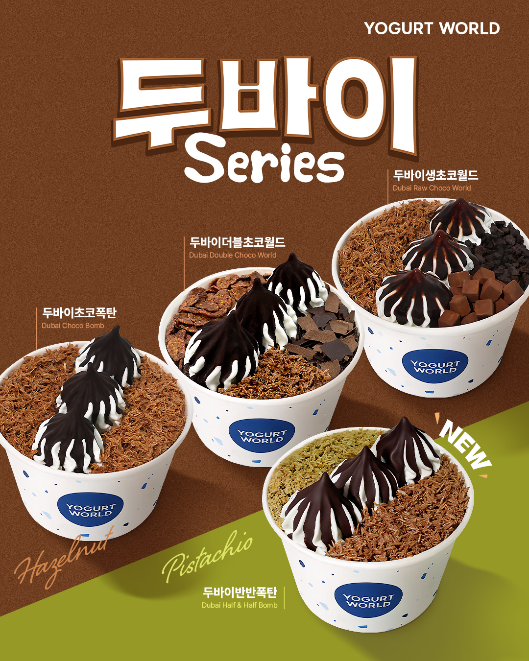 不同於其他品牌使用鮮奶油或蛋糕,Yogurt World 選擇以優格冰淇淋作為基底。共推出杜拜生巧克力、杜拜雙重巧克力、杜拜巧克力炸彈等口味,將其特色的開心果、芝麻醬和酥皮絲內餡融入優格冰品中,搭配優格的口感,整體更清爽解膩,利用優格天然的乳酸味,去切斷開心果醬與巧克力的厚重油脂感。對於想嘗試杜拜巧克力風味,但又擔心口味過於甜膩厚重的人來說,這款結合酸甜優格的冰品提供了另一種較為輕盈的選擇。