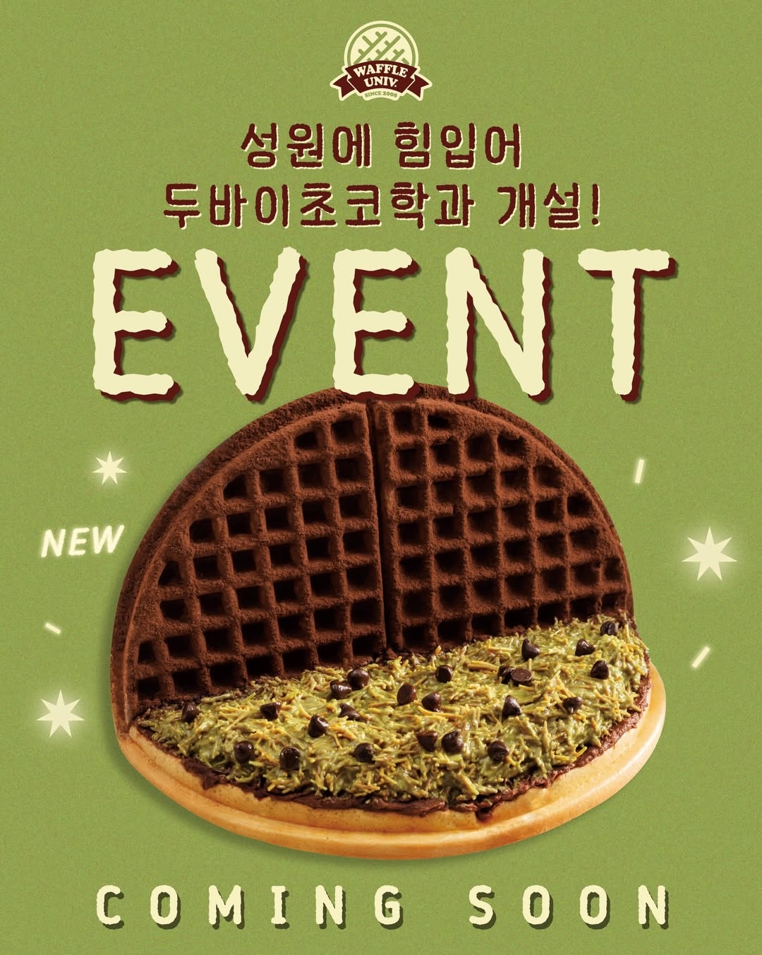 Waffle University 以現烤的薄脆美式鬆餅聞名,這款新品延續了其「配料豐富」的品牌風格。在剛烤好時帶有熱氣的格子鬆餅中,塗抹上厚實的鮮奶油,並豪邁擠上開心果醬與巧克力醬。 關鍵的卡達拉菲麵絲被夾在鮮奶油層之中,當鬆餅對折咬下時,麵絲的酥脆感會混和在綿密的鮮奶油裡,有如熱版的杜拜巧克力,完全是不同風味。