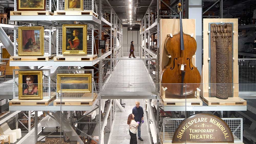 倫敦 V&A 博物館打破了傳統「策展」的框架,帶來了全新的觀展體驗。實際上是一個「開放式庫房」,不隱藏博物館的運作,而是邀請公眾走進幕後。透過透明玻璃與網狀走道,參觀者有如置身於電影《駭客任務》的場景中,被上下左右數以萬計的藏品包圍。