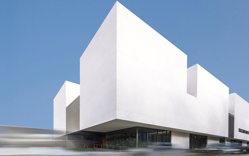這座博物館是已故普立茲克獎得主槇文彥的遺作之一,專為收藏企業家 Reinhard Ernst 的抽象藝術藏品而建。以「切削」的手法,將這座建築雕塑成一塊精緻的白色花崗岩方塊。建築中心是一個 玻璃中庭,受到日本傳統庭院的啟發,將自然光與綠意引入建築深處,沒有多餘的裝飾,全白的牆面與橡木地板是為了給色彩濃烈的抽象畫作提供最純淨的背景。