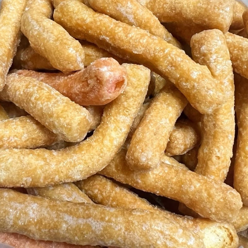 外型像一根根細小炸麵條,吃起來酥脆爽口,帶著糖漿甜味與麵粉香氣,非常涮嘴,常常一不小心就嗑掉半包。因外觀像乾燥棗樹枝而得名「寸棗」,雖然與紅棗無關,但在閩南習俗中有「吃寸棗,年年好」的說法。也有人認為其形狀象徵男丁,所以有早生貴子的寓意。看似不起眼,卻是長輩與孩子都愛的經典過年零食,也是追劇聊天時的最佳零嘴。