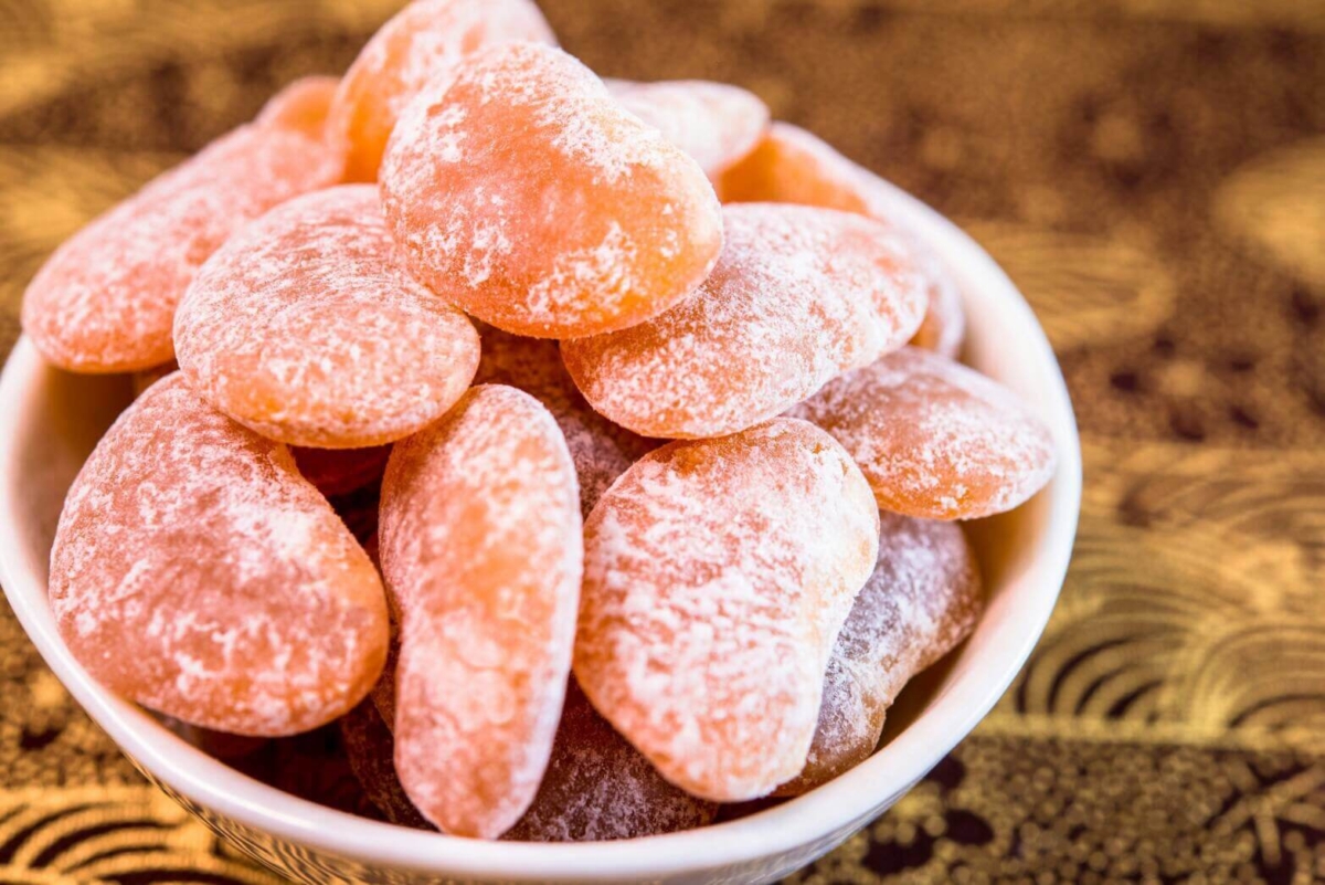 紅白相間的小軟糖,質地軟糯Q彈,外層裹著細細糯米粉,入口帶著淡淡甜香,口感類似涼糕卻更黏糯一些。名稱源自「桔紅」,象徵大吉大利,早期也是訂婚喜糖的一種,用糯米製成,帶有濃厚喜慶意味。甜而不膩的溫潤口感,總讓人想起阿嬤家糖果罐裡的味道,是許多人心中最溫柔的年節記憶。