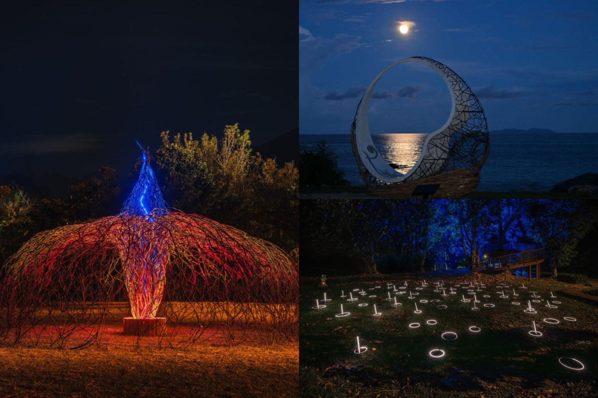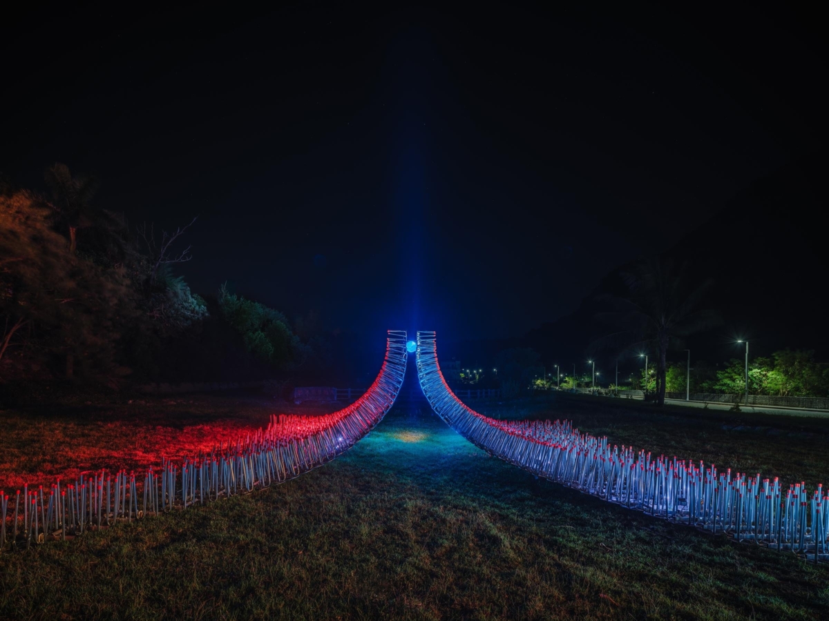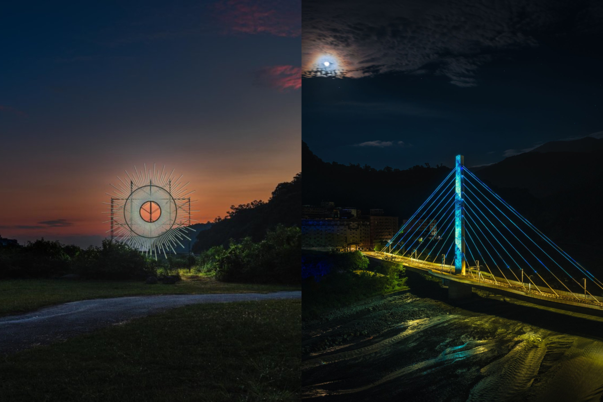 2024台東光祭將10組作品與當地自然景觀融合,展現日、月、星辰等元素的壯麗,像是燈光裝置「煥Bright」的跨越知本溪,利用橋樑結構創造出獨特的光影藝術,象徵台東與自然共生的和諧;而大型作品「介隙:向陽之域」則定格在台東的夜晚曙光,帶來沈浸式的日出與星空體驗。
