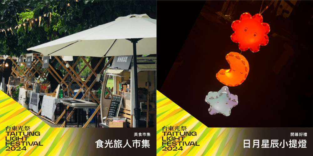 除了燈光裝置藝術,台東光祭也帶來「食光旅人市集」、「文化體驗工作坊」!市集將在10/26、27於忠義堂舉行,匯聚20組特色攤位,從美式料理、部落風味與手作商品,應有盡有。而台東縣政府也同時發放小提燈,讓前來的遊客一起同樂。