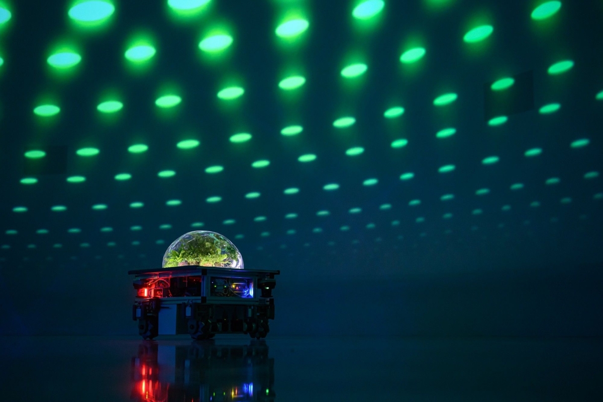 除了展間內吸引人的大型生態箱裝置之外,這回展覽特別和工研院合作,將其研發的自走車化為行走的生態箱,呼應物種遷移史與「生態圈 0」的概念,同時也於展覽期間規劃兩場講述表演和AR工作坊活動,期待能帶給觀眾更多元的互動體驗,更加認識與理解本次創作計畫。