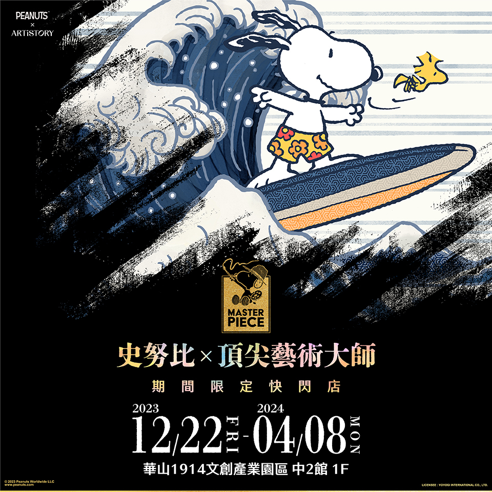 史努比粉集合啦!PEANUTS這回攜手ARTiSTORY,打造「史努比×頂尖藝術大師期間限定快閃店」,將花生漫畫融入多幅知名藝術畫作中,帶來一系列超有趣的全新史努比,即日起在華山文創園區免費入場,現場更有周邊可以大買特買,千萬別錯過啦~
