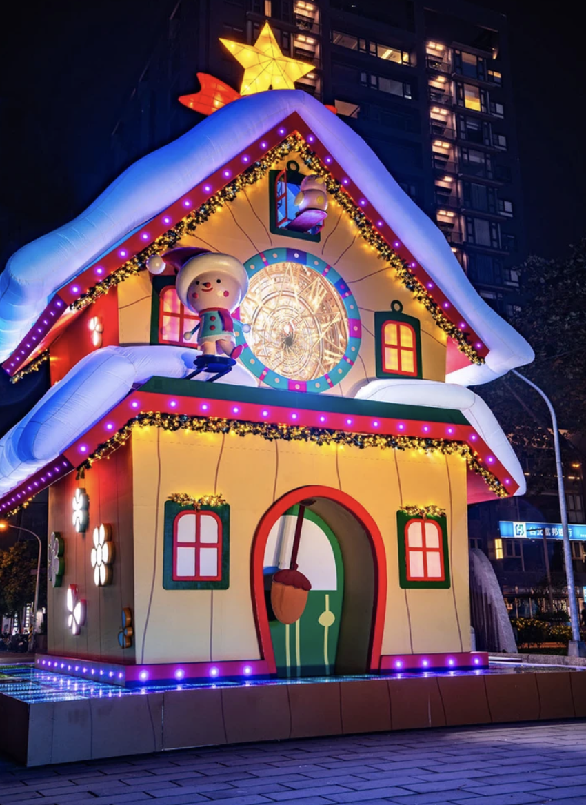 「2024新北歡樂耶誕城」打造全新魔幻角色、百變聖誕樹以及50+打卡點造景。新北市市民廣場有約8層樓高的「巨型LED城堡」燈光秀、可愛的「小小兵」,另外還有各式各樣的耶誕裝置分布在站前廣場、萬坪公園、板橋車站等區域。