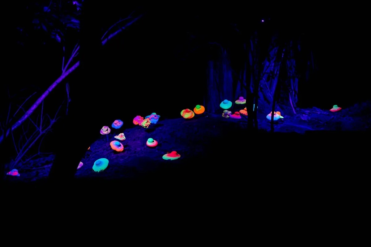 本屆空山祭展出13件藝術作品,由11組藝術家與在地居民攜手創作,亮點作品《大地甦醒的瞬間》展現生命力象徵,以及森林精靈的低語《迷幻夜派對》,還有首次引入6公尺高戶外紗幕投影,結合螢光繪畫與動畫,日夜都能欣賞多層次光影效果,打造沉浸式藝術饗宴。