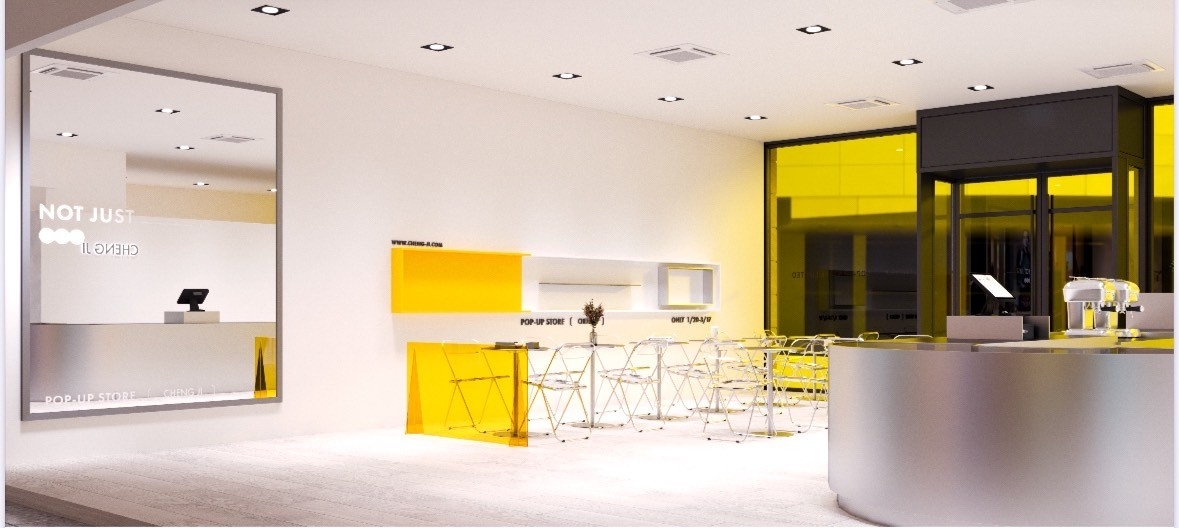 這回「承繼」快閃店位於新光三越信義新天地A8,店內整體視覺取以焦糖中的「黃」作為亮點,搭配個性的金屬色與乾淨的白,簡單與衝突間不僅僅著眼在外觀的追求,更創造出驚喜的快閃空間體驗。