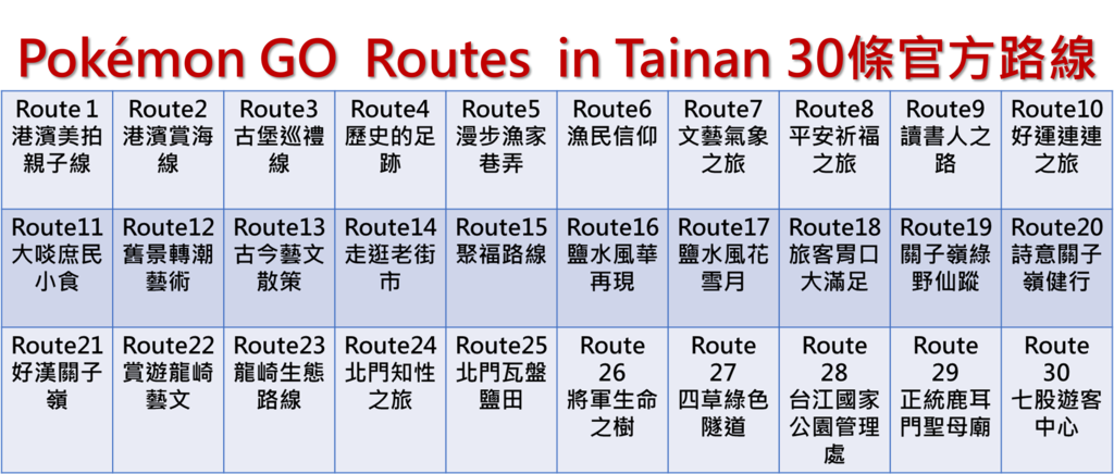 官方路線每條都在1.2公里以內,訓練家們每完成一條路線,即能獲得遊戲認證的路線勳章。而台南市政府觀光旅遊局再加碼推出限量僅500份的「魚頭君icash2.0吊飾」,只要解鎖活動全部30條官方路線,就可以至安平旅遊服務中心一份,訓練家們快衝!