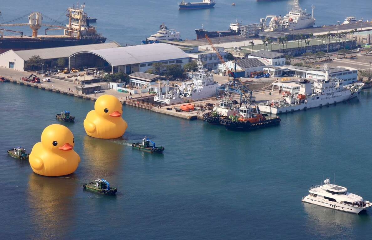 由荷蘭藝術家霍夫曼所創作的巨型充氣鴨自2007年起遨「游」世界各地,十年前更曾現身高雄,吸引許多遊客前往朝聖、拍照打卡。如今2024年黃色小鴨睽違10年重返高雄燈會,再次掀起黃色炫風,許多地方皆出現可愛的黃色身影!